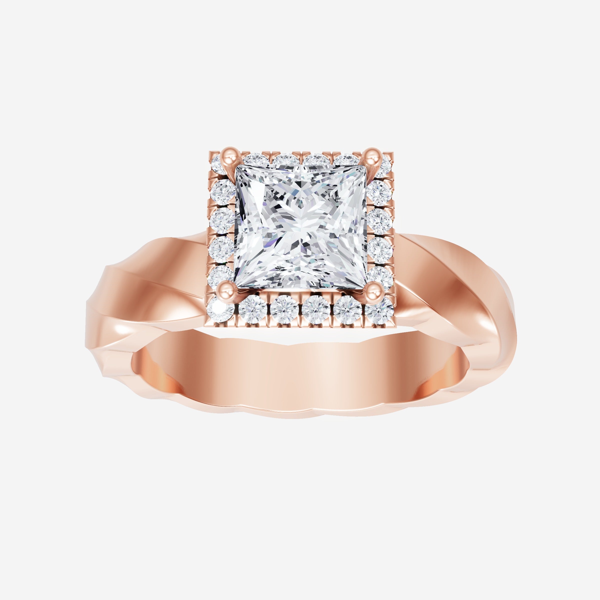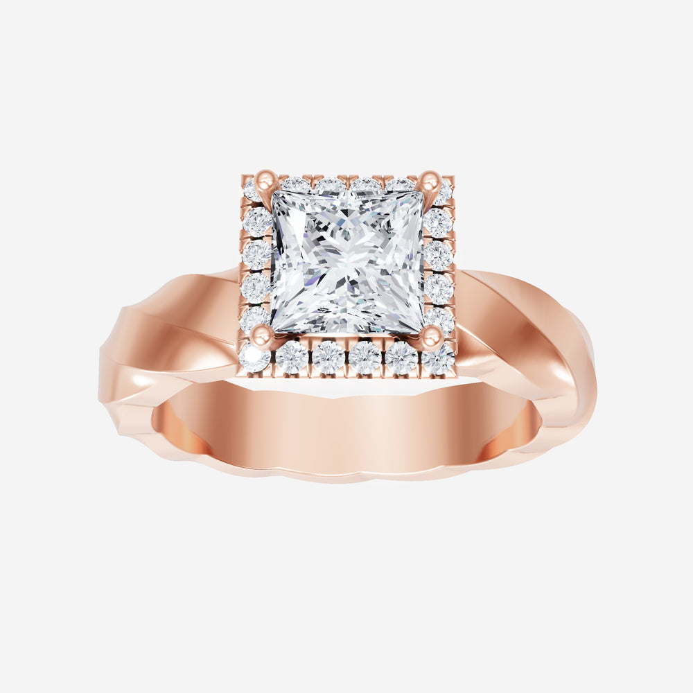 You’ve designed a ring that reflects lasting elegance and grace! Crafted from 18k Rose Gold, this exquisite Princess lab-grown diamond is the centerpiece of this unique design. This Twisted Shank with a Micro Halo head showcases the brilliance of the Princess diamond, creating a timeless look. This stunning ring makes the perfect symbol of everlasting love and devotion.