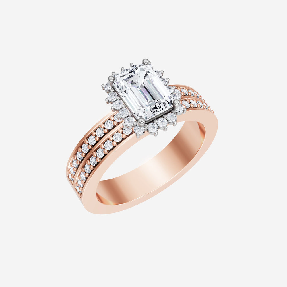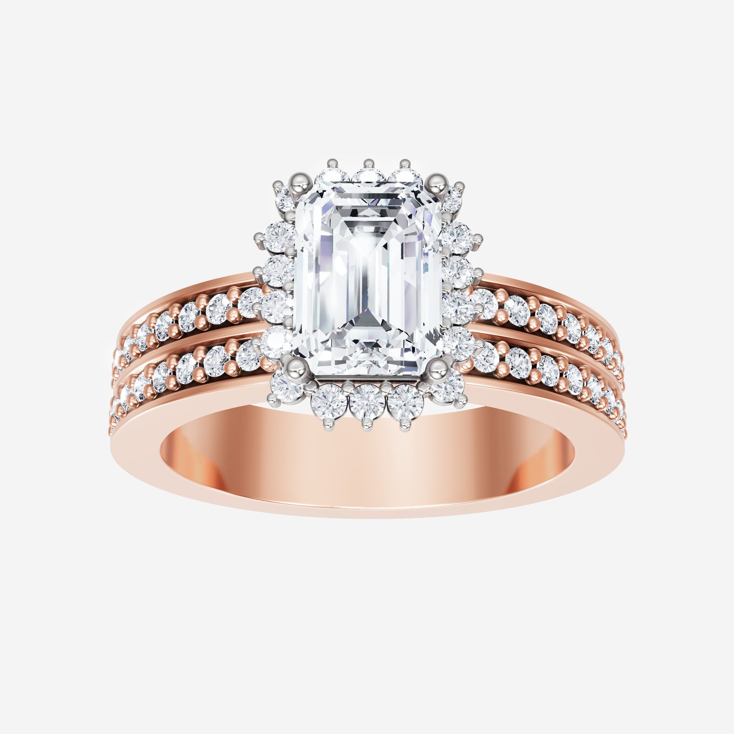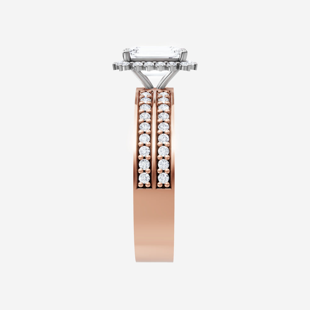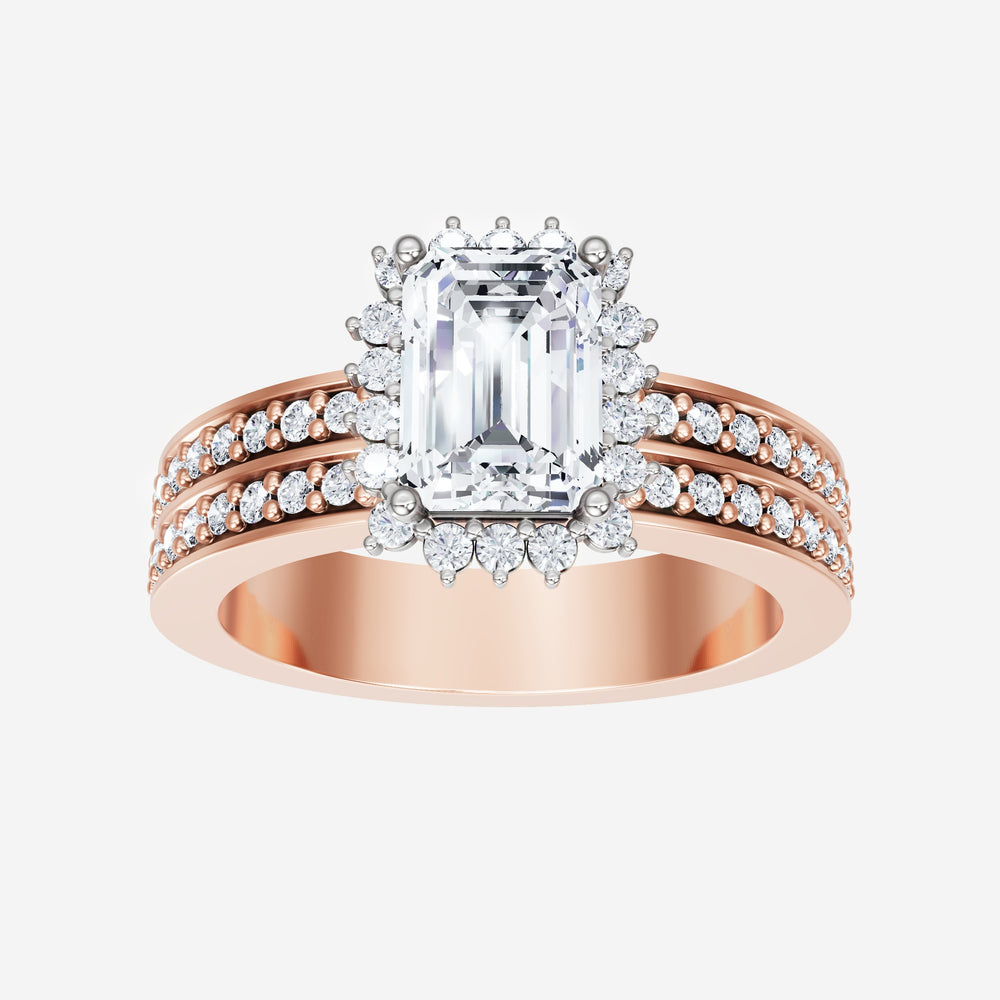You’ve designed a ring that reflects lasting elegance and grace! Crafted from 18k Rose White Dual Tone, this exquisite Emerald lab-grown diamond is the centerpiece of this unique design. This Double Row Pave with a Diana Halo head showcases the brilliance of the Emerald diamond, creating a timeless look. This ring will become a cherished reminder of life's most treasured moments.