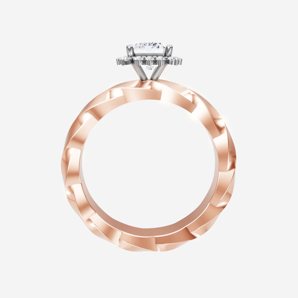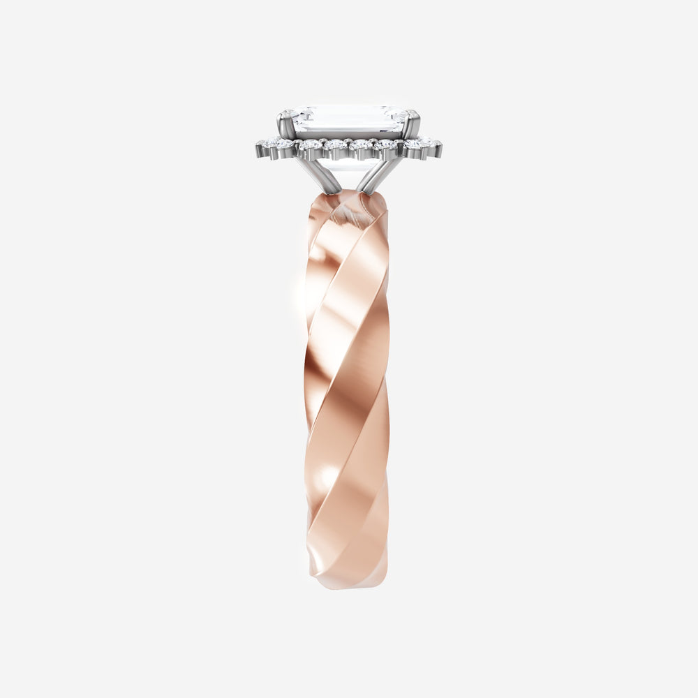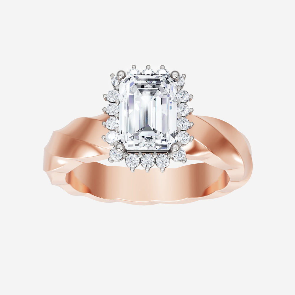 You’ve designed a ring that reflects lasting elegance and grace! Crafted from 18k Rose White Dual Tone, this exquisite Emerald lab-grown diamond is the centerpiece of this unique design. This Twisted Shank with a Diana Halo head showcases the brilliance of the Emerald diamond, creating a timeless look. Ideal for those who seek both beauty and meaning, this ring will stand as a testament to cherished memories.