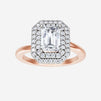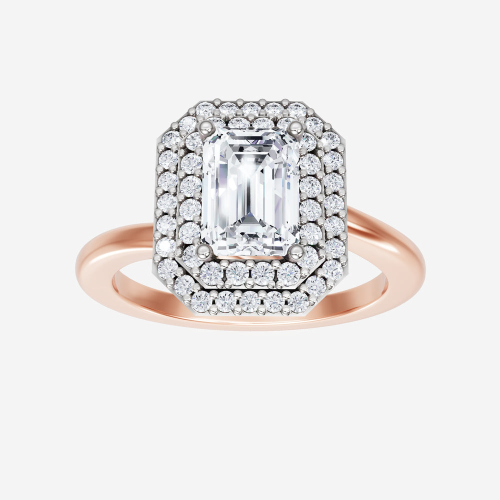 You’ve designed a ring that reflects lasting elegance and grace! Crafted from 18k Rose White Dual Tone, this exquisite Emerald lab-grown diamond is the centerpiece of this unique design. This Bypass Shank with a Double Halo head showcases the brilliance of the Emerald diamond, creating a timeless look. A perfect choice to celebrate love, commitment, and everything in between.