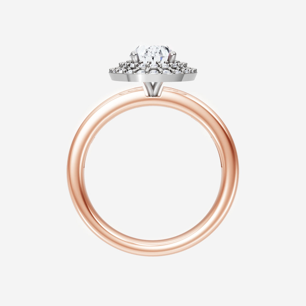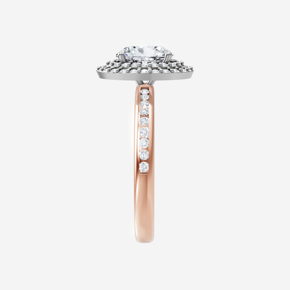 You’ve designed a ring that reflects lasting elegance and grace! Crafted from 18k Rose White Dual Tone, this exquisite Oval lab-grown diamond is the centerpiece of this unique design. This Channel Set Shank with a Double Halo head showcases the brilliance of the Oval diamond, creating a timeless look. This ring will become a cherished reminder of life's most treasured moments.