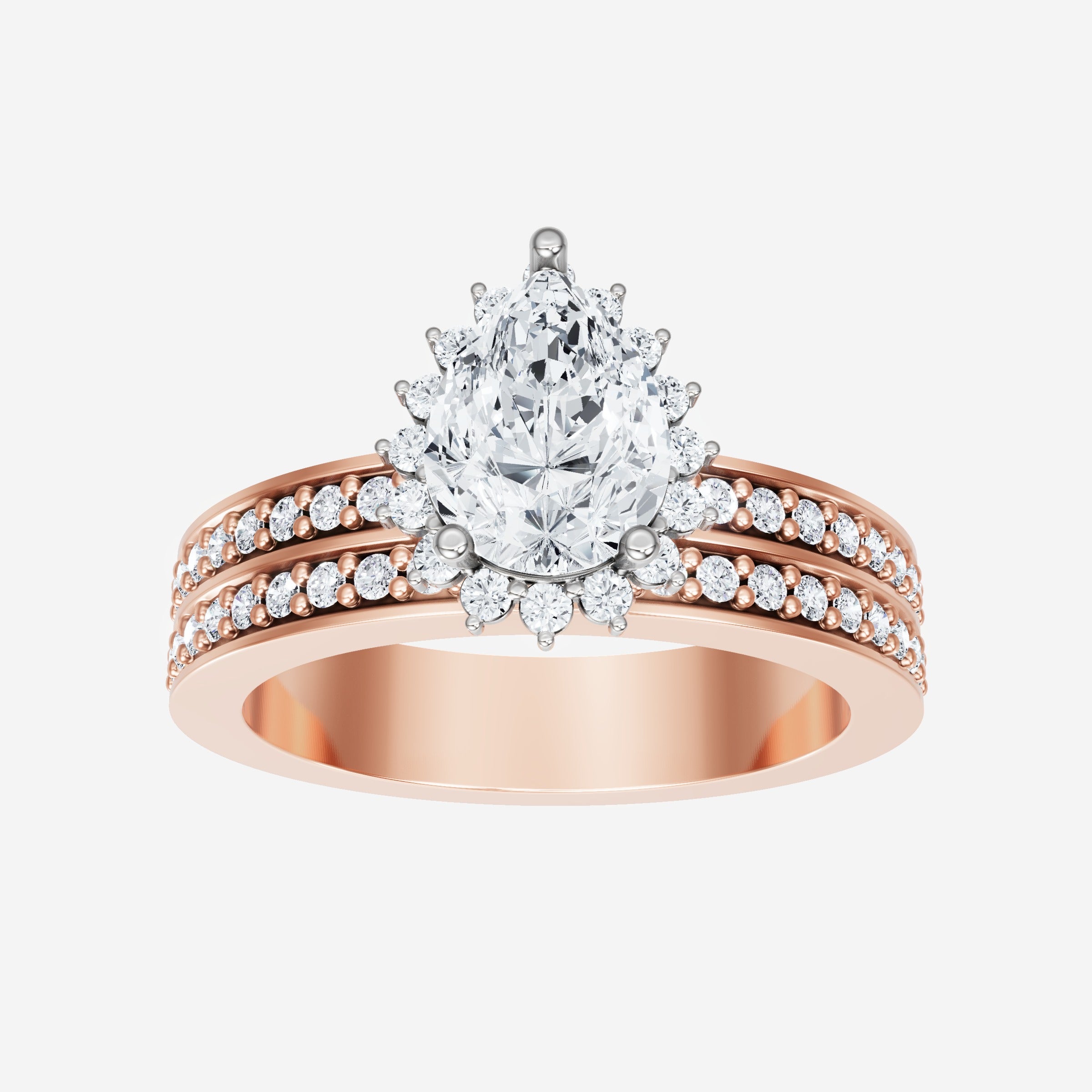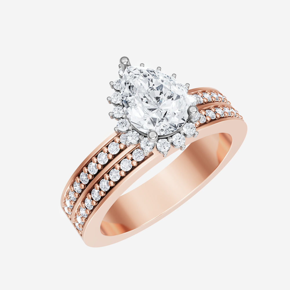 You’ve designed a ring that reflects lasting elegance and grace! Crafted from 18k Rose White Dual Tone, this exquisite Pear lab-grown diamond is the centerpiece of this unique design. This Double Row Pave with a Diana Halo head showcases the brilliance of the Pear diamond, creating a timeless look. This elegant piece is the perfect symbol of love, strength, and timeless beauty.