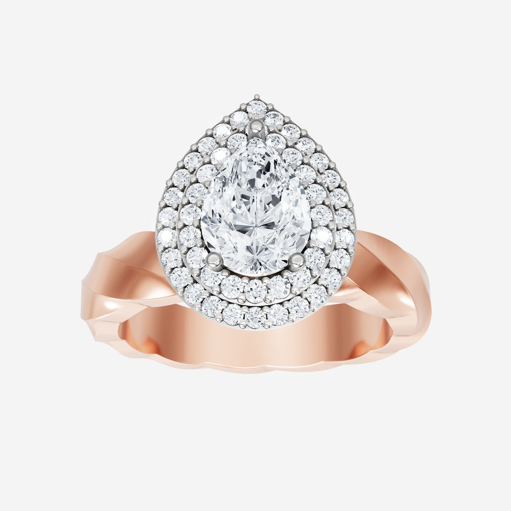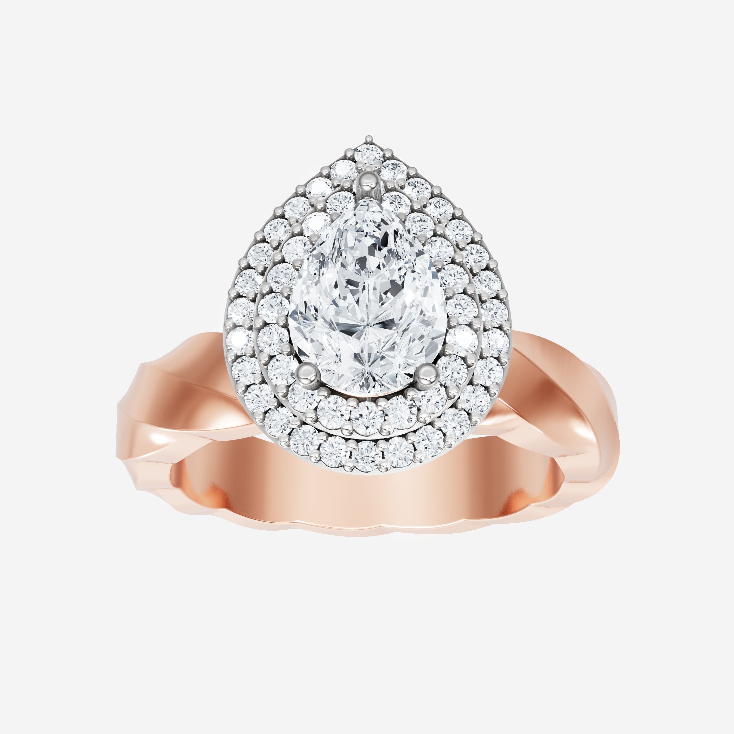 You’ve designed a ring that reflects lasting elegance and grace! Crafted from 18k Rose White Dual Tone, this exquisite Pear lab-grown diamond is the centerpiece of this unique design. This Twisted Shank with a Double Halo head showcases the brilliance of the Pear diamond, creating a timeless look. It's a piece of elegance and beauty, perfect for marking life's most beautiful occasions.