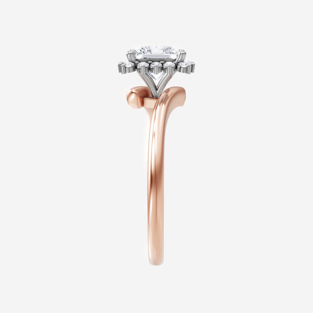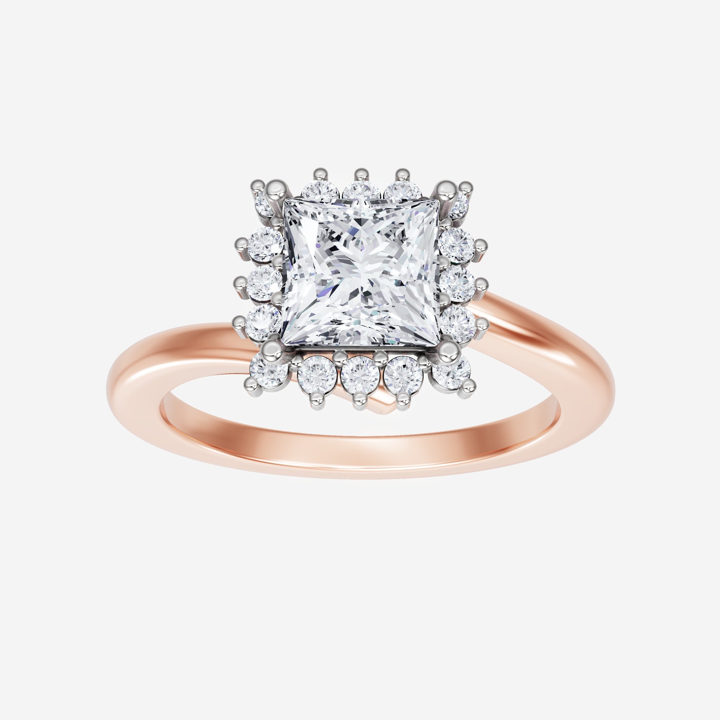 You’ve designed a ring that reflects lasting elegance and grace! Crafted from 18k Rose White Dual Tone, this exquisite Princess lab-grown diamond is the centerpiece of this unique design. This Bypass Shank with a Diana Halo head showcases the brilliance of the Princess diamond, creating a timeless look. This elegant piece is the perfect symbol of love, strength, and timeless beauty.