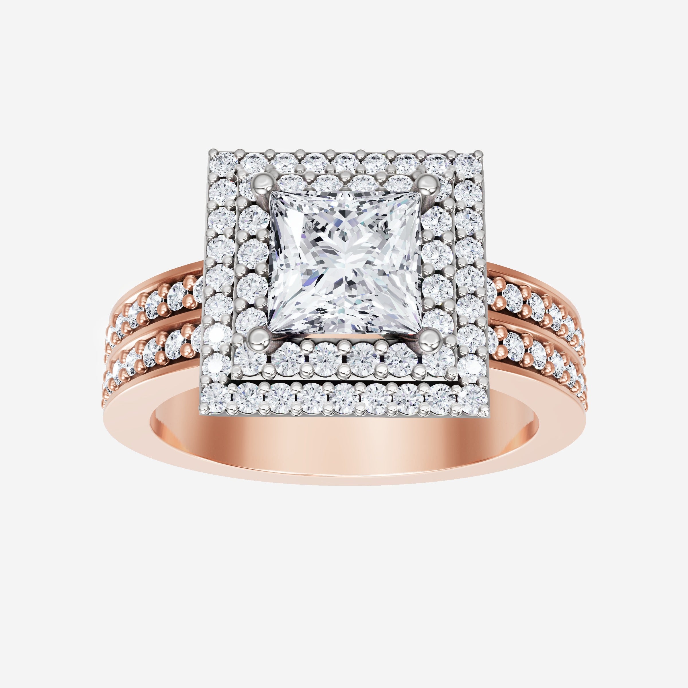 You’ve designed a ring that reflects lasting elegance and grace! Crafted from 18k Rose White Dual Tone, this exquisite Princess lab-grown diamond is the centerpiece of this unique design. This Double Row Pave with a Double Halo head showcases the brilliance of the Princess diamond, creating a timeless look. Ideal for those who seek both beauty and meaning, this ring will stand as a testament to cherished memories.