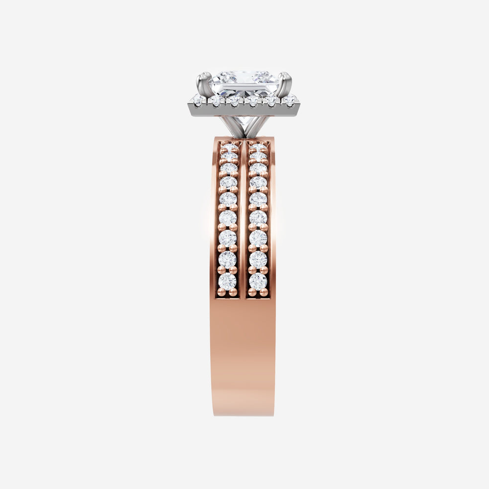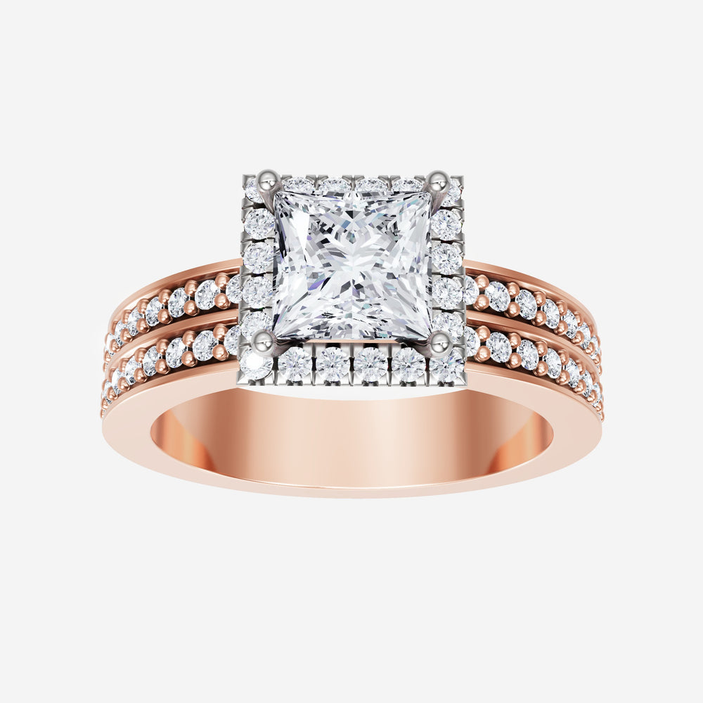 You’ve designed a ring that reflects lasting elegance and grace! Crafted from 18k Rose White Dual Tone, this exquisite Princess lab-grown diamond is the centerpiece of this unique design. This Double Row Pave with a Micro Halo head showcases the brilliance of the Princess diamond, creating a timeless look. This ring will become a cherished reminder of life's most treasured moments.