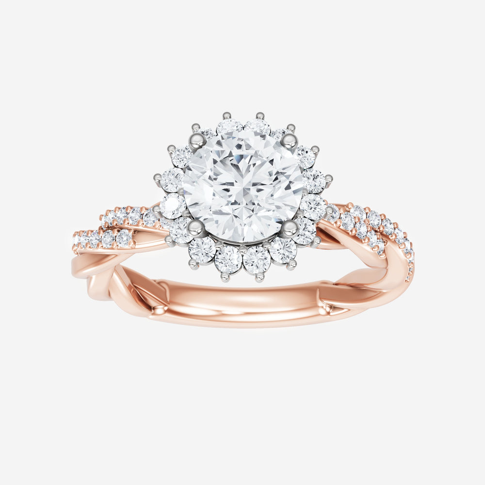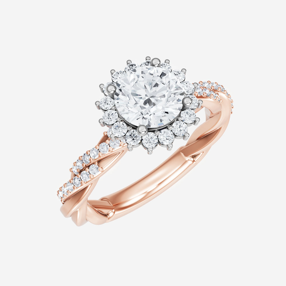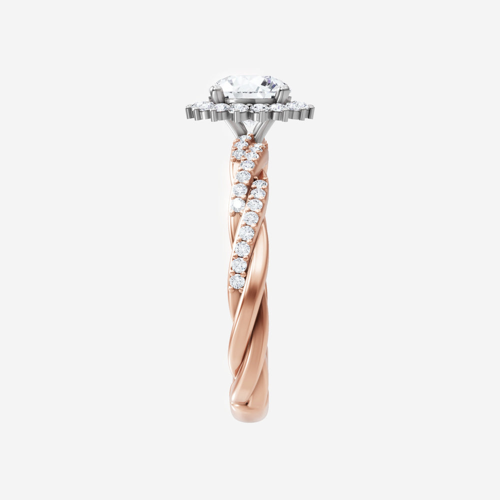 You’ve designed a ring that reflects lasting elegance and grace! Crafted from 18k Rose White Dual Tone, this exquisite Round lab-grown diamond is the centerpiece of this unique design. This Rope Diamond Shank with a Diana Halo head showcases the brilliance of the Round diamond, creating a timeless look. With this ring, celebrate every moment of joy, success, and love.