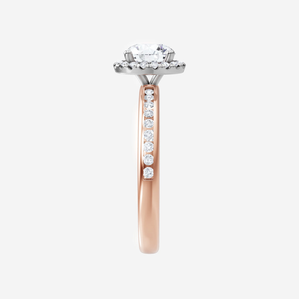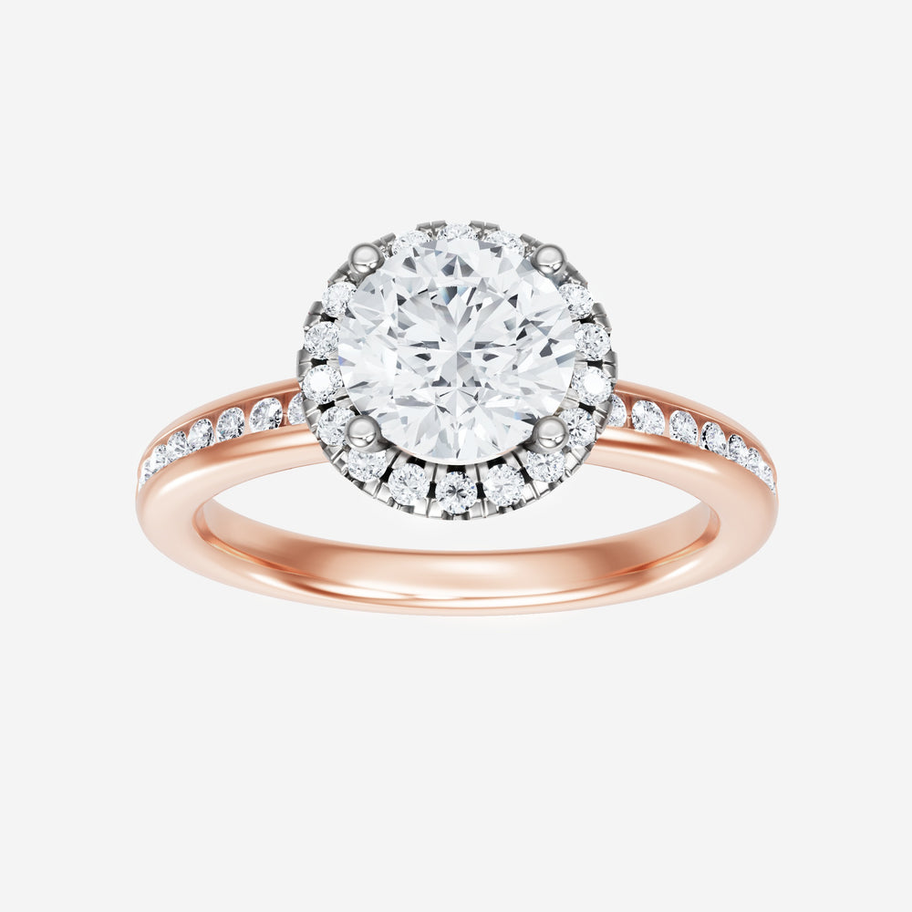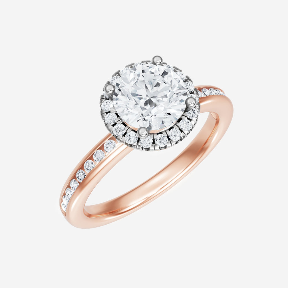 You’ve designed a ring that reflects lasting elegance and grace! Crafted from 18k Rose White Dual Tone, this exquisite Round lab-grown diamond is the centerpiece of this unique design. This Channel Set Shank with a Micro Halo head showcases the brilliance of the Round diamond, creating a timeless look. Ideal for those who seek both beauty and meaning, this ring will stand as a testament to cherished memories.