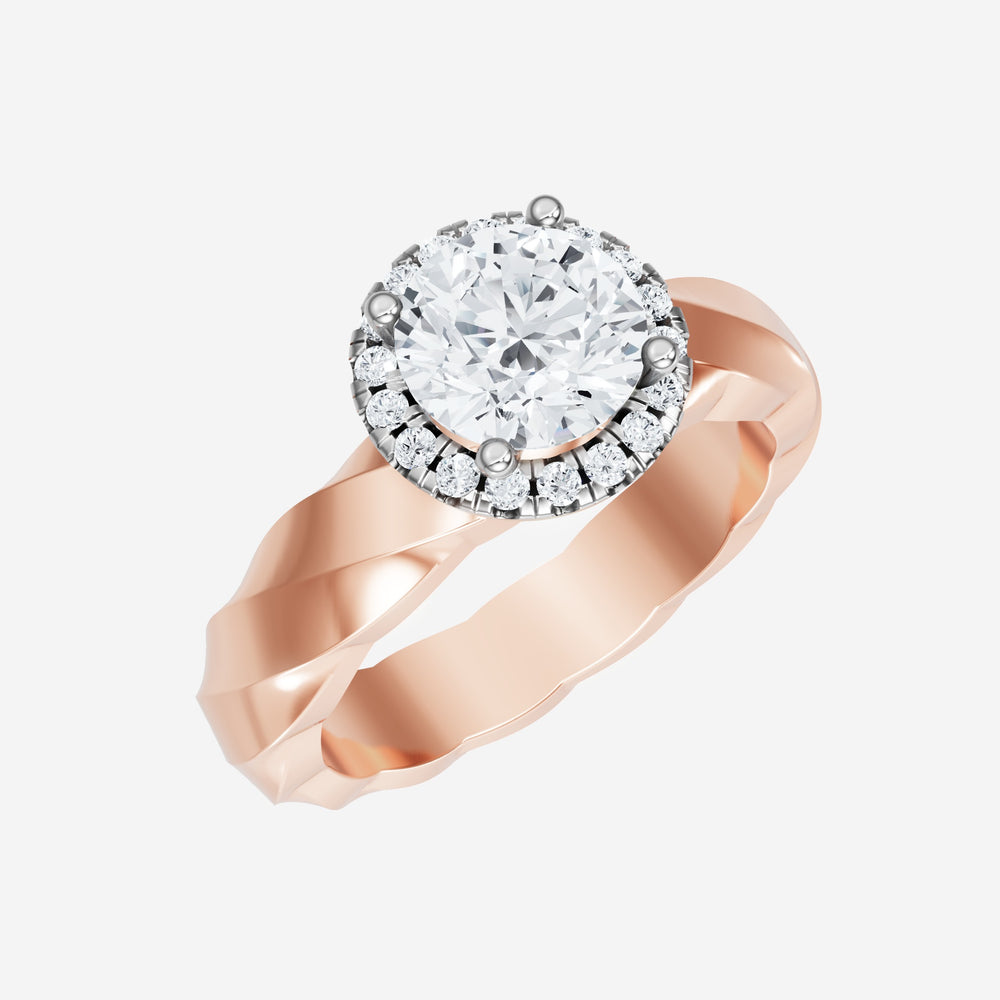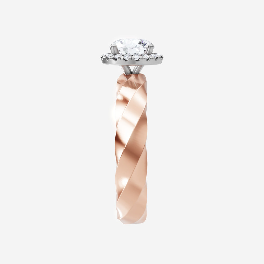 You’ve designed a ring that reflects lasting elegance and grace! Crafted from 18k Rose White Dual Tone, this exquisite Round lab-grown diamond is the centerpiece of this unique design. This Twisted Shank with a Micro Halo head showcases the brilliance of the Round diamond, creating a timeless look. It's a piece of elegance and beauty, perfect for marking life's most beautiful occasions.