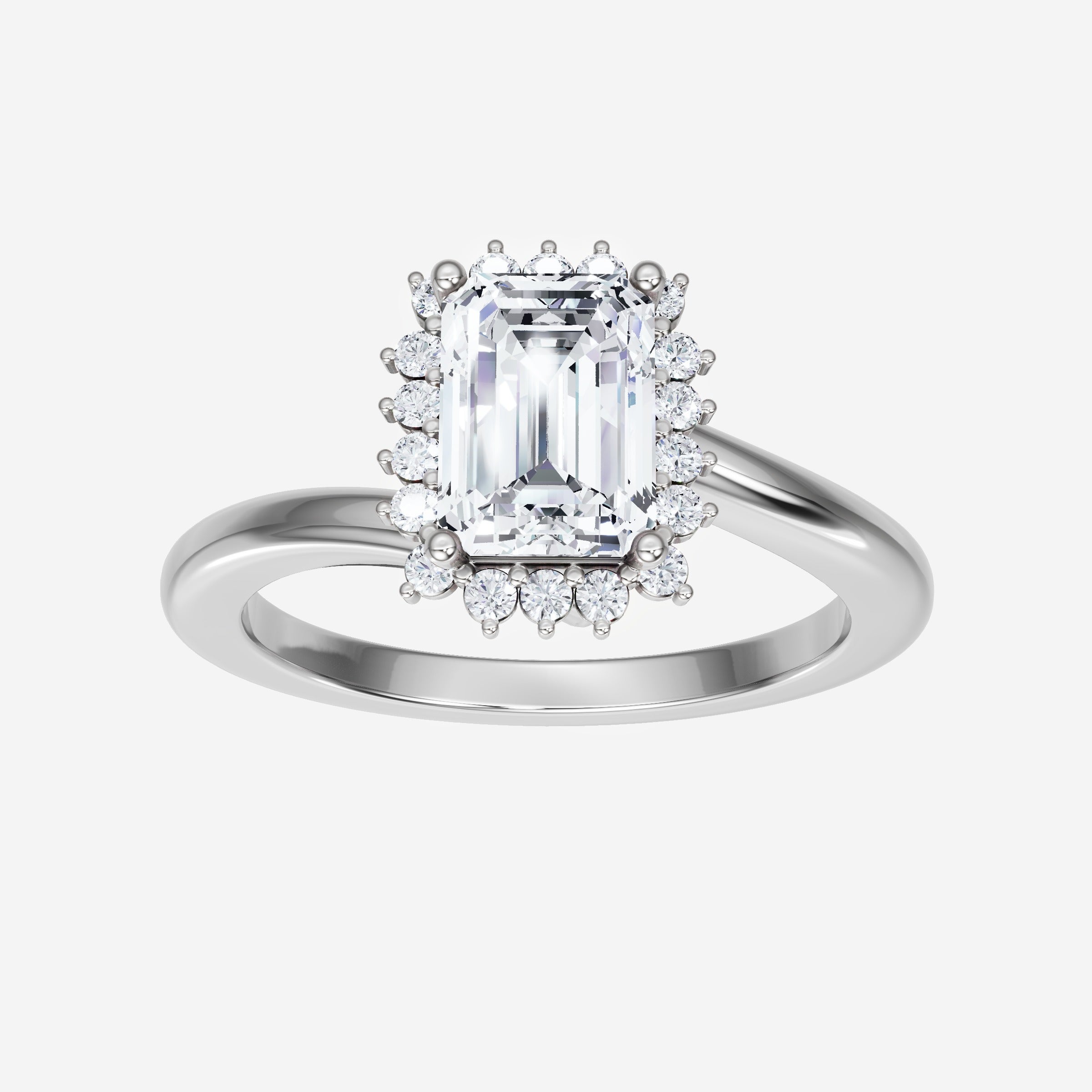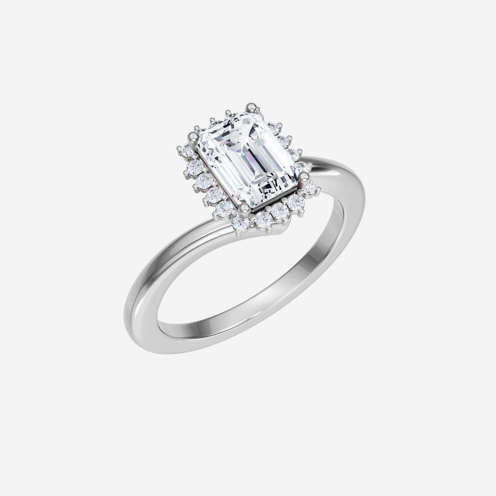 You’ve designed a ring that reflects lasting elegance and grace! Crafted from 18k White Gold, this exquisite Emerald lab-grown diamond is the centerpiece of this unique design. This Bypass Shank with a Diana Halo head showcases the brilliance of the Emerald diamond, creating a timeless look. With this ring, celebrate every moment of joy, success, and love.