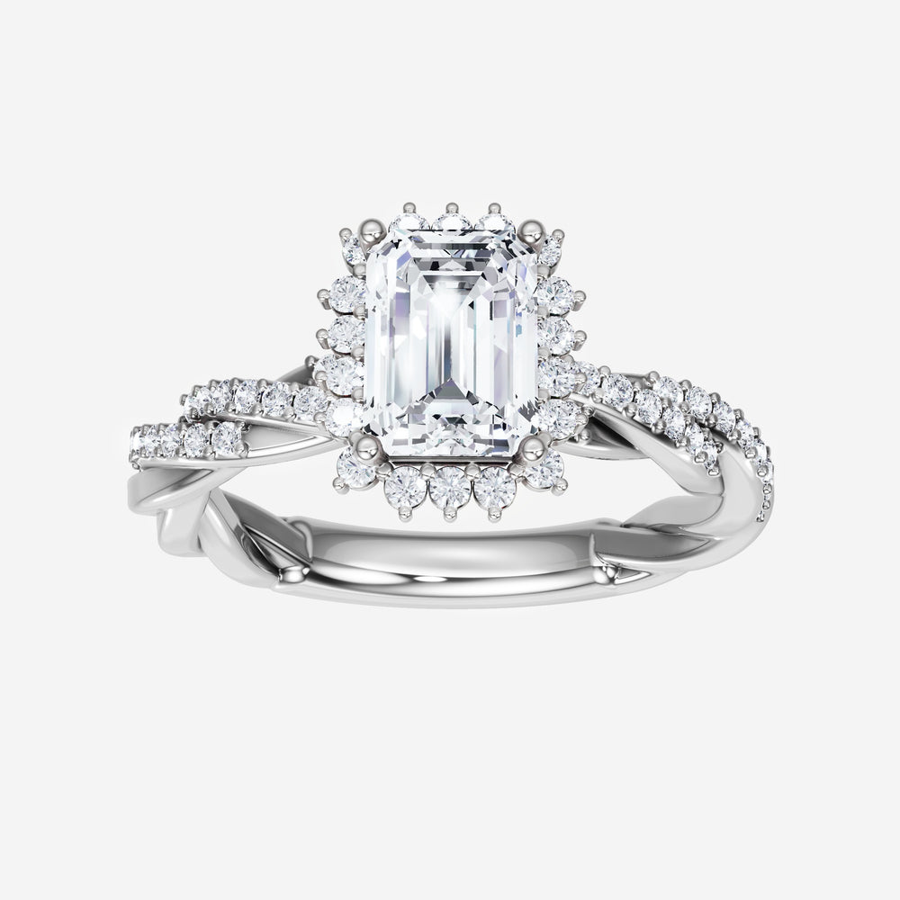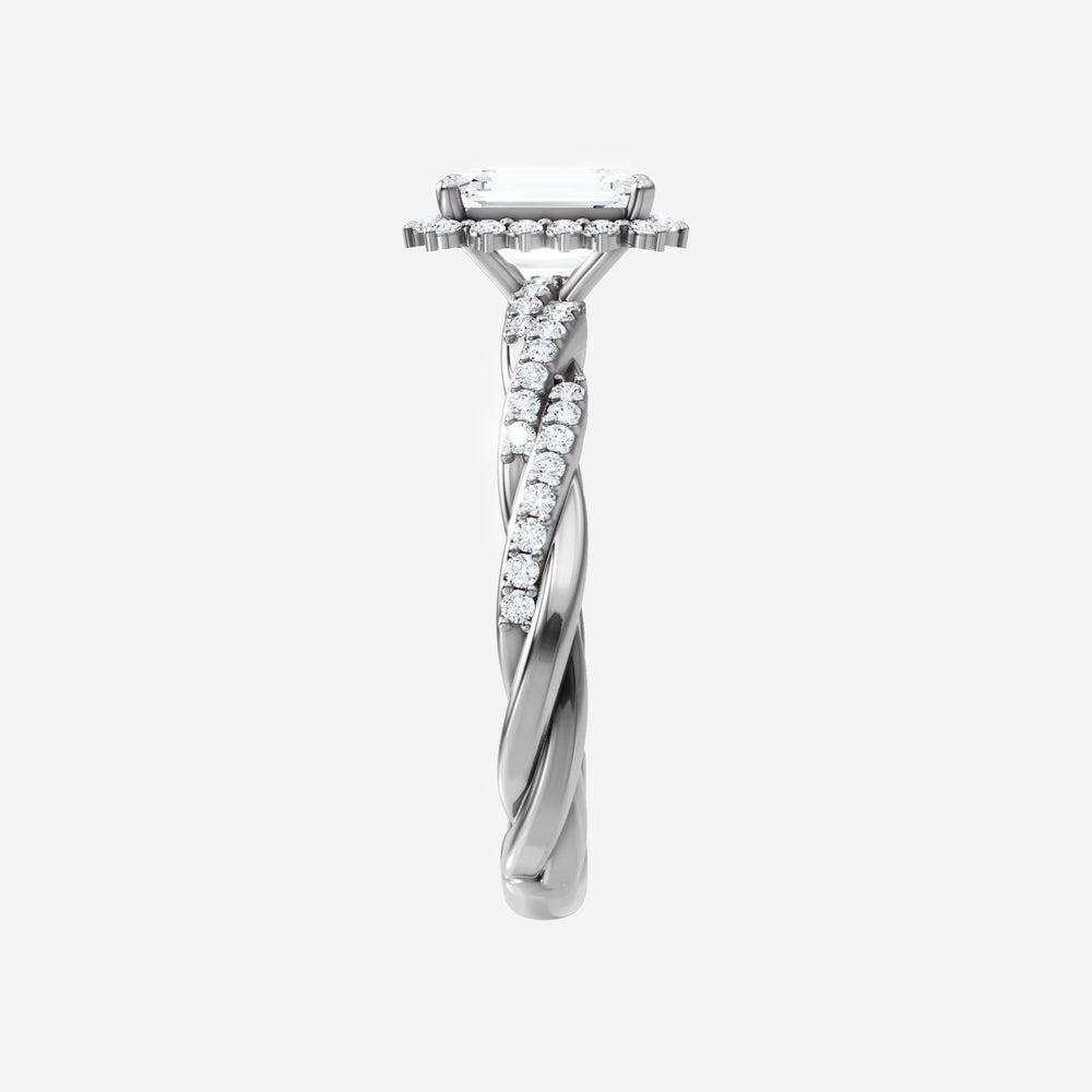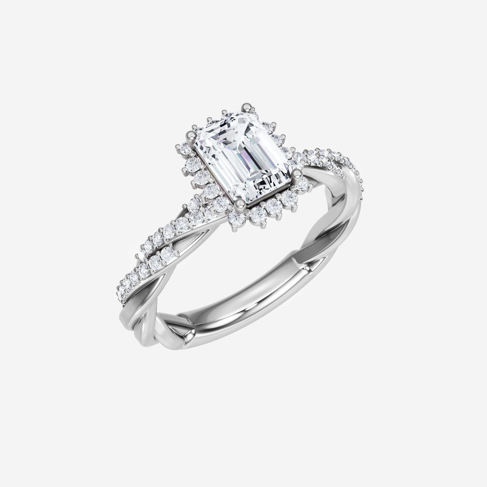 You’ve designed a ring that reflects lasting elegance and grace! Crafted from 18k White Gold, this exquisite Emerald lab-grown diamond is the centerpiece of this unique design. This Rope Diamond Shank with a Diana Halo head showcases the brilliance of the Emerald diamond, creating a timeless look. This ring will become a cherished reminder of life's most treasured moments.