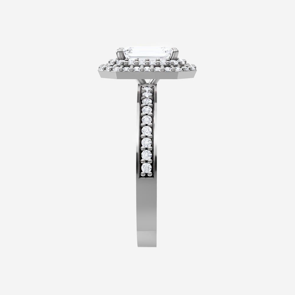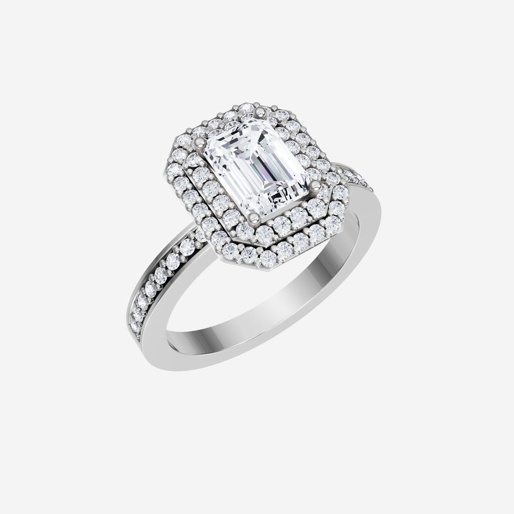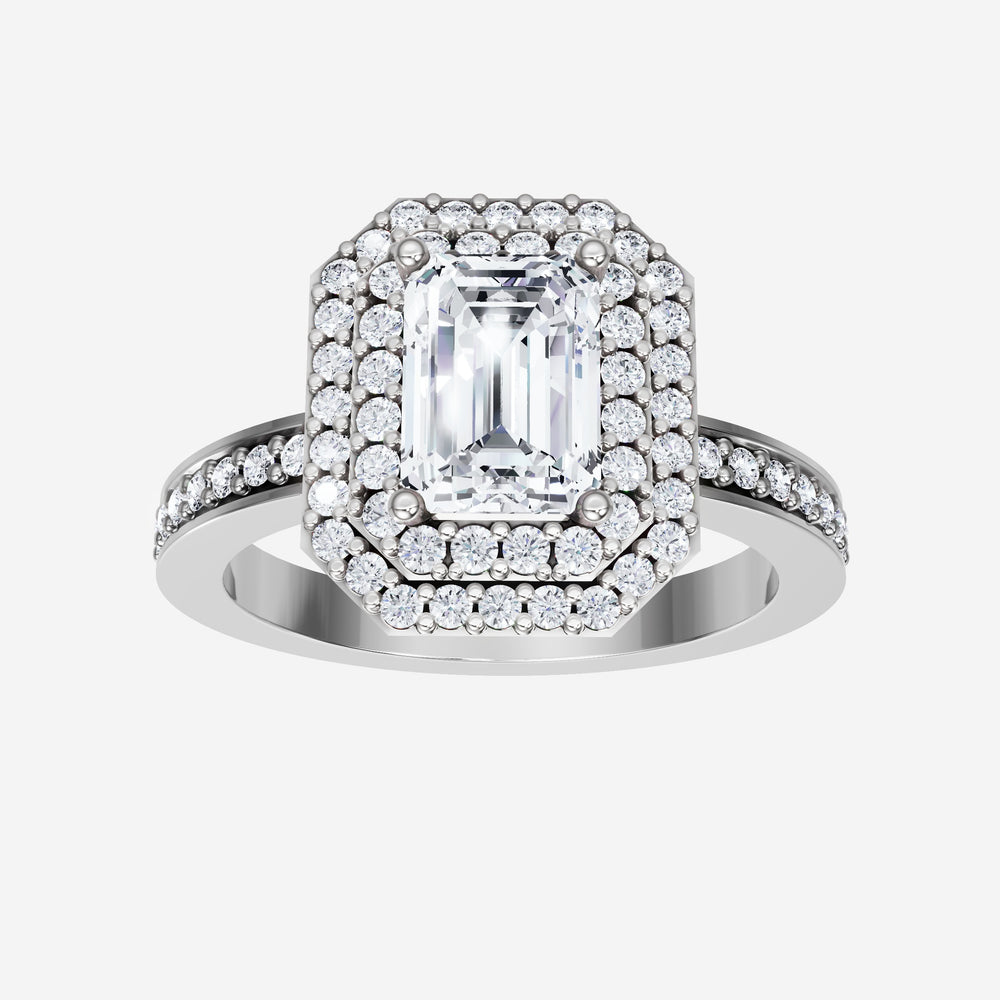 You’ve designed a ring that reflects lasting elegance and grace! Crafted from 18k White Gold, this exquisite Emerald lab-grown diamond is the centerpiece of this unique design. This Single Pave Shank with a Double Halo head showcases the brilliance of the Emerald diamond, creating a timeless look. With this ring, celebrate every moment of joy, success, and love.