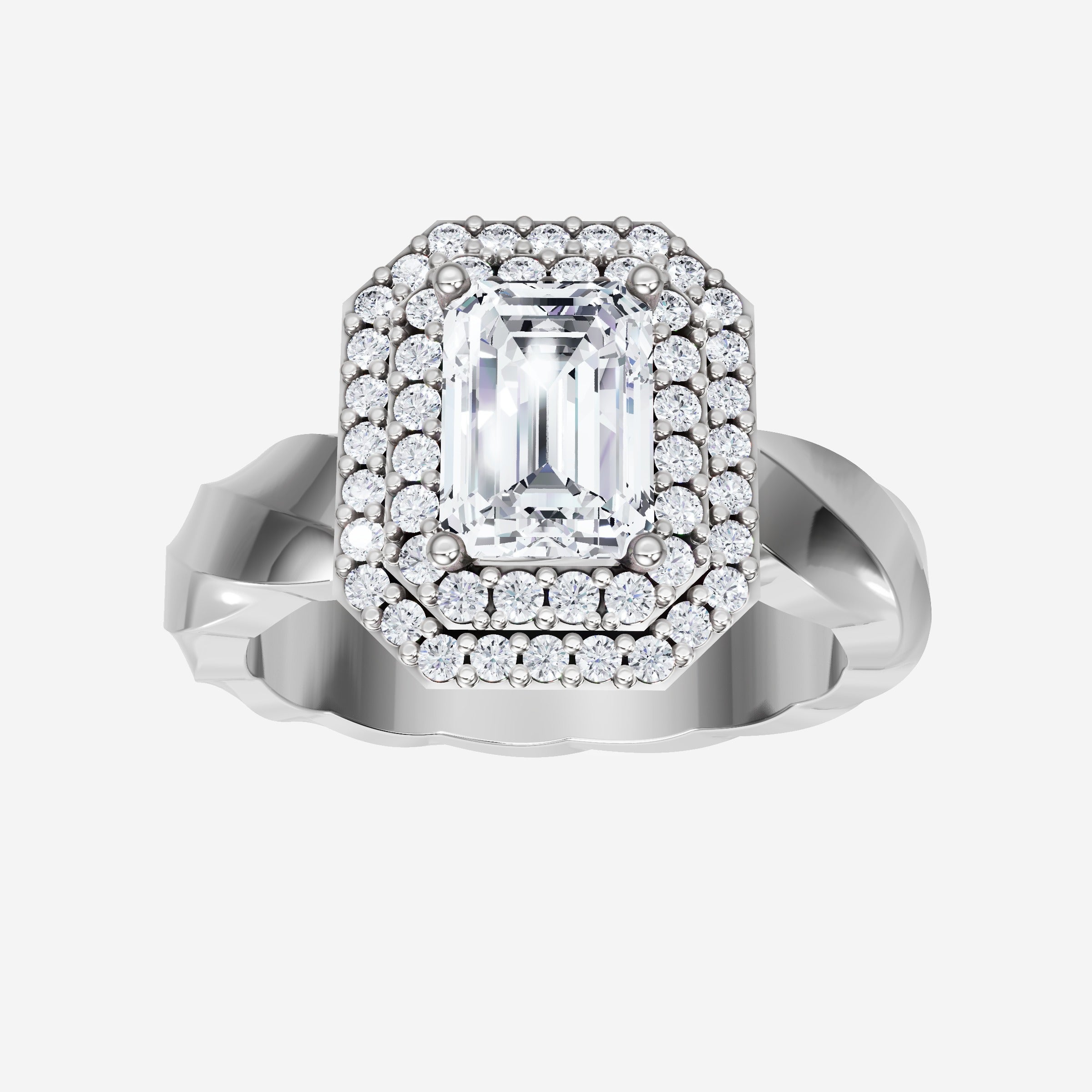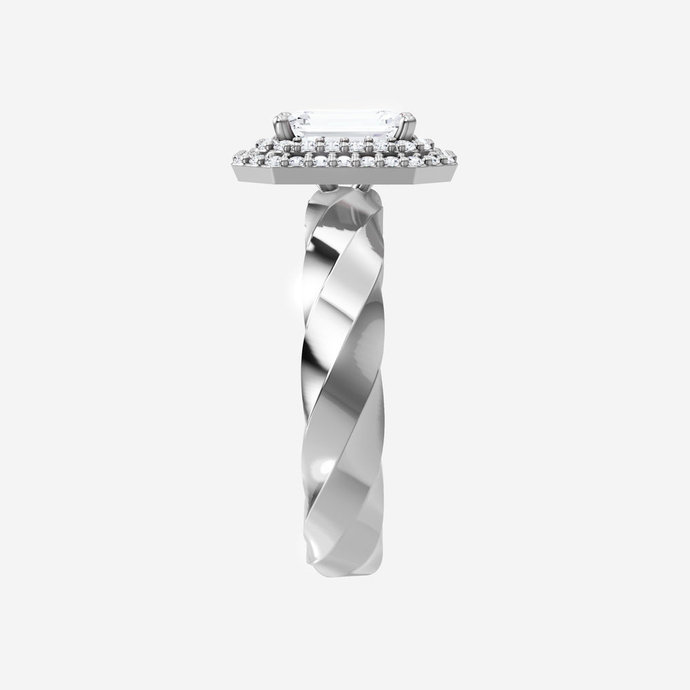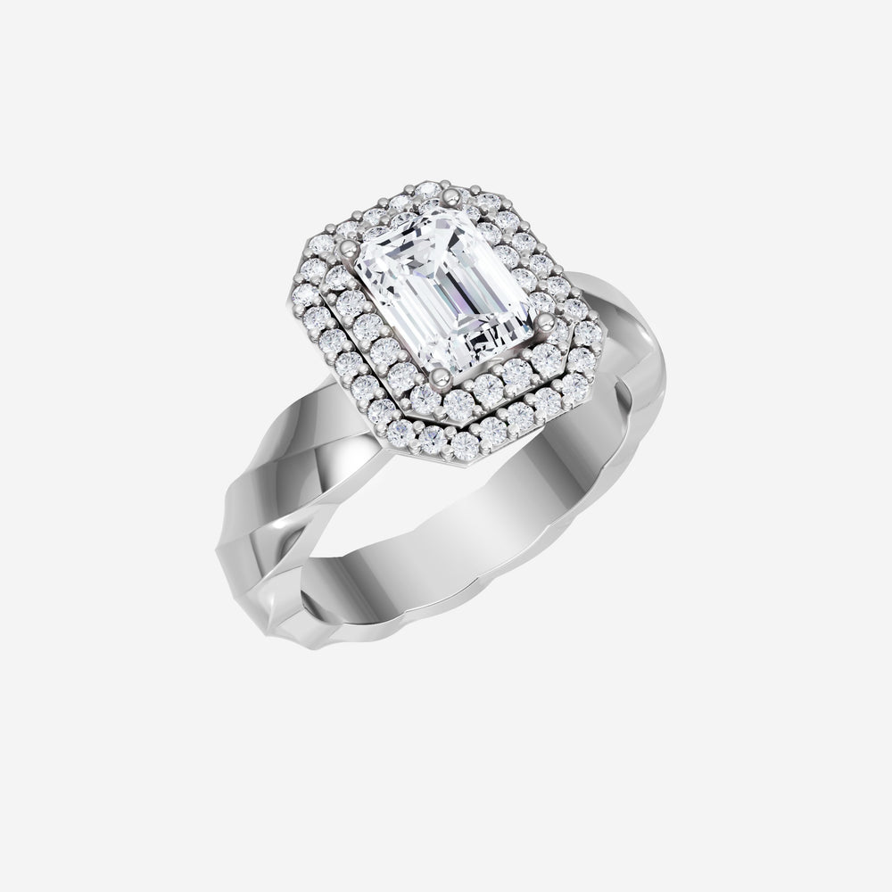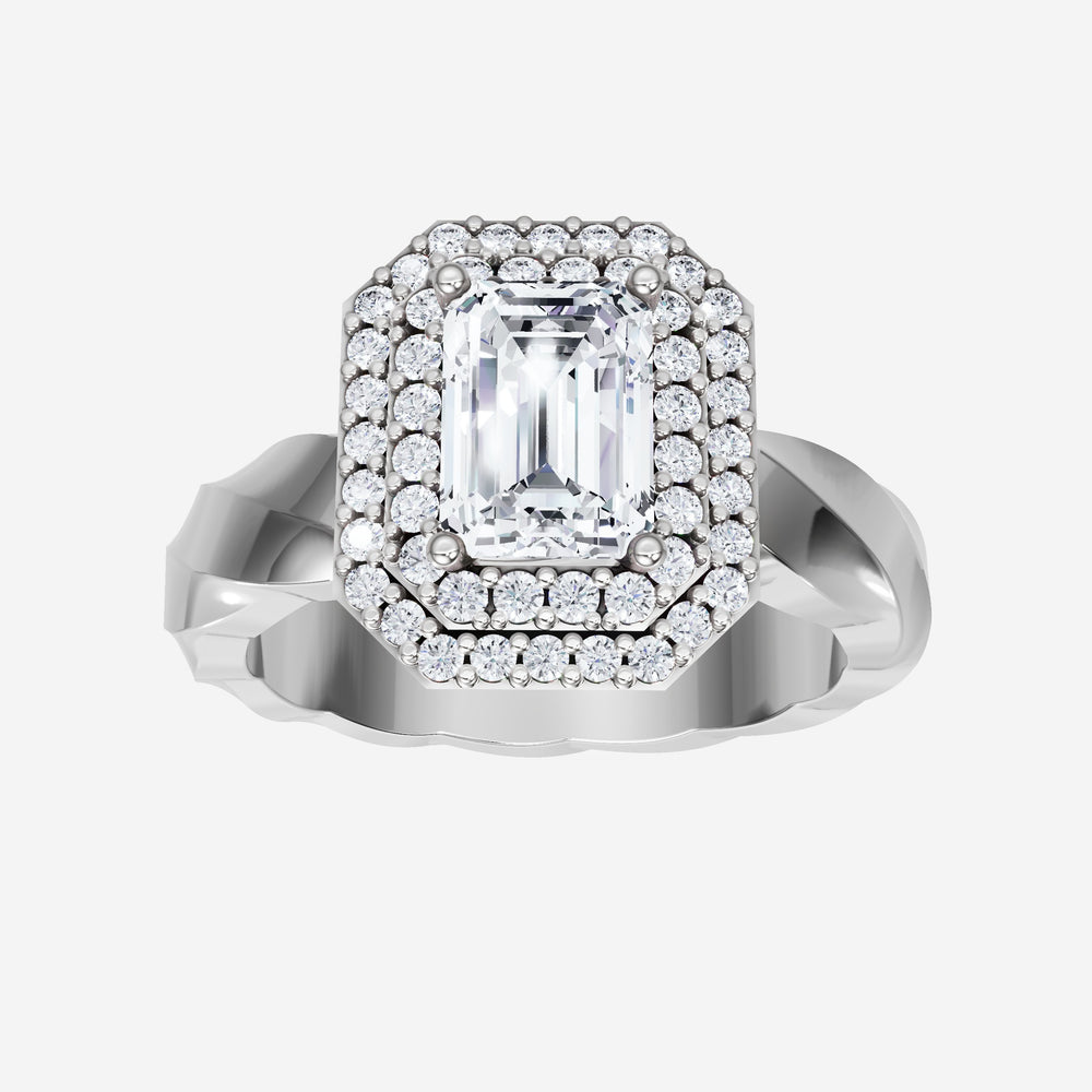 You’ve designed a ring that reflects lasting elegance and grace! Crafted from 18k White Gold, this exquisite Emerald lab-grown diamond is the centerpiece of this unique design. This Twisted Shank with a Double Halo head showcases the brilliance of the Emerald diamond, creating a timeless look. A perfect choice to celebrate love, commitment, and everything in between.