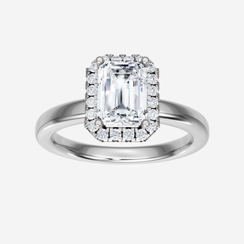You’ve designed a ring that reflects lasting elegance and grace! Crafted from 18k White Gold, this exquisite Emerald lab-grown diamond is the centerpiece of this unique design. This Basic Plain Shank with a Micro Halo head showcases the brilliance of the Emerald diamond, creating a timeless look. Ideal for those who seek both beauty and meaning, this ring will stand as a testament to cherished memories.