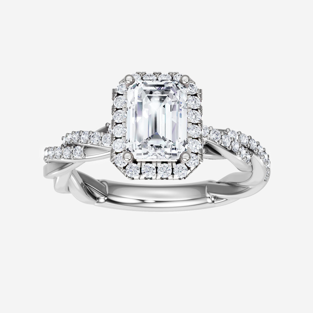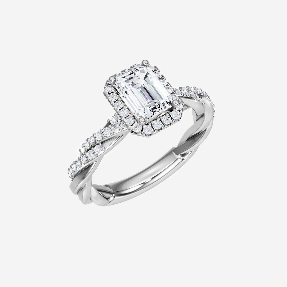 You’ve designed a ring that reflects lasting elegance and grace! Crafted from 18k White Gold, this exquisite Emerald lab-grown diamond is the centerpiece of this unique design. This Rope Diamond Shank with a Micro Halo head showcases the brilliance of the Emerald diamond, creating a timeless look. A perfect choice to celebrate love, commitment, and everything in between.