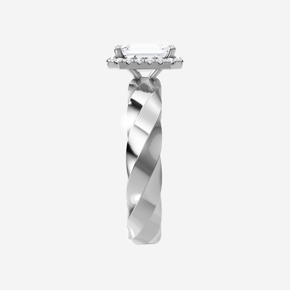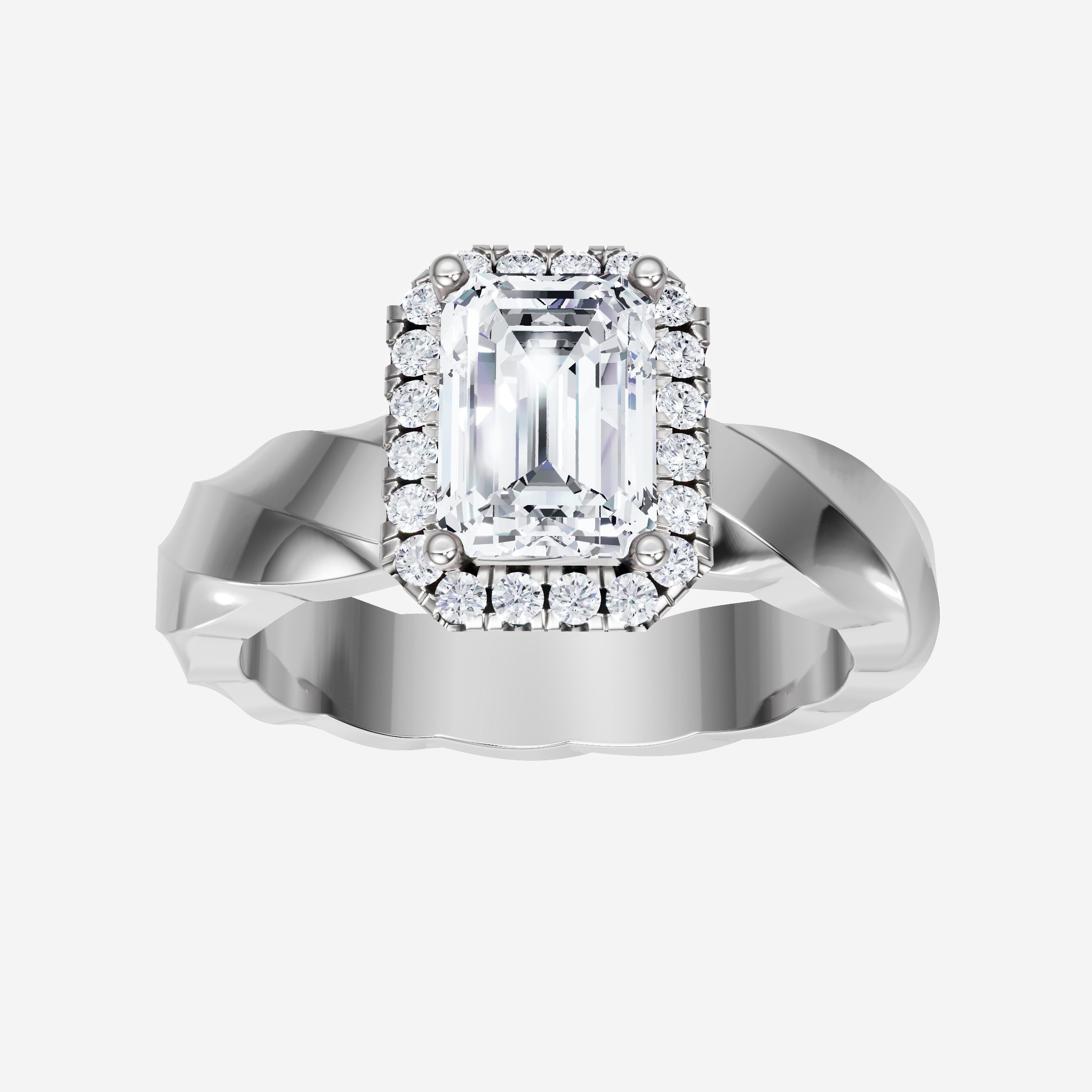 You’ve designed a ring that reflects lasting elegance and grace! Crafted from 18k White Gold, this exquisite Emerald lab-grown diamond is the centerpiece of this unique design. This Twisted Shank with a Micro Halo head showcases the brilliance of the Emerald diamond, creating a timeless look. A perfect choice to celebrate love, commitment, and everything in between.