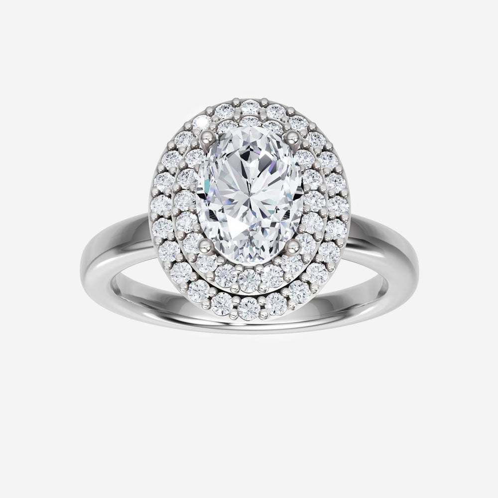 You’ve designed a ring that reflects lasting elegance and grace! Crafted from 18k White Gold, this exquisite Oval lab-grown diamond is the centerpiece of this unique design. This Basic Plain Shank with a Double Halo head showcases the brilliance of the Oval diamond, creating a timeless look. Ideal for those who seek both beauty and meaning, this ring will stand as a testament to cherished memories.