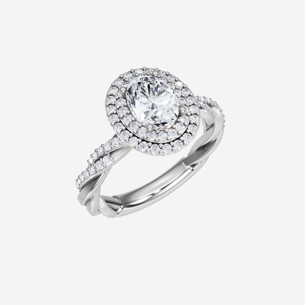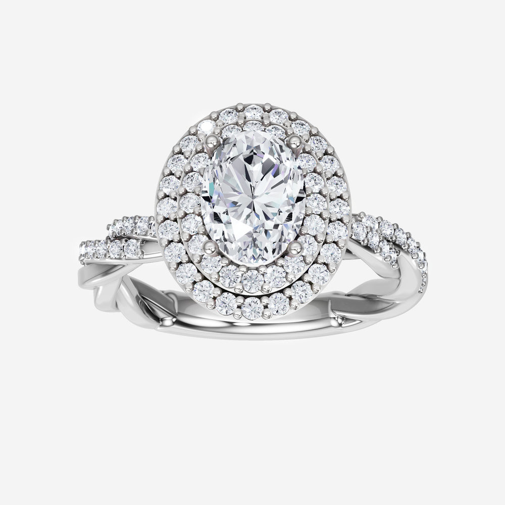 You’ve designed a ring that reflects lasting elegance and grace! Crafted from 18k White Gold, this exquisite Oval lab-grown diamond is the centerpiece of this unique design. This Rope Diamond Shank with a Double Halo head showcases the brilliance of the Oval diamond, creating a timeless look. It's a piece of elegance and beauty, perfect for marking life's most beautiful occasions.