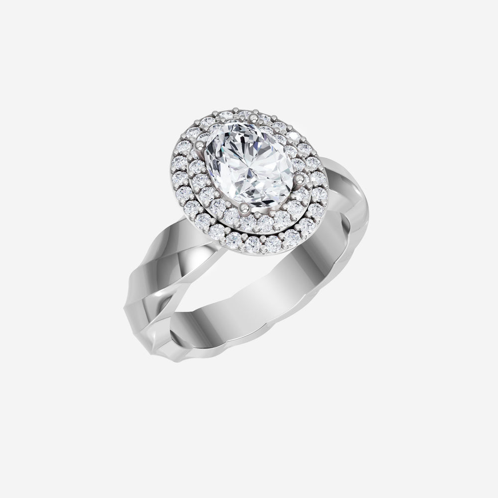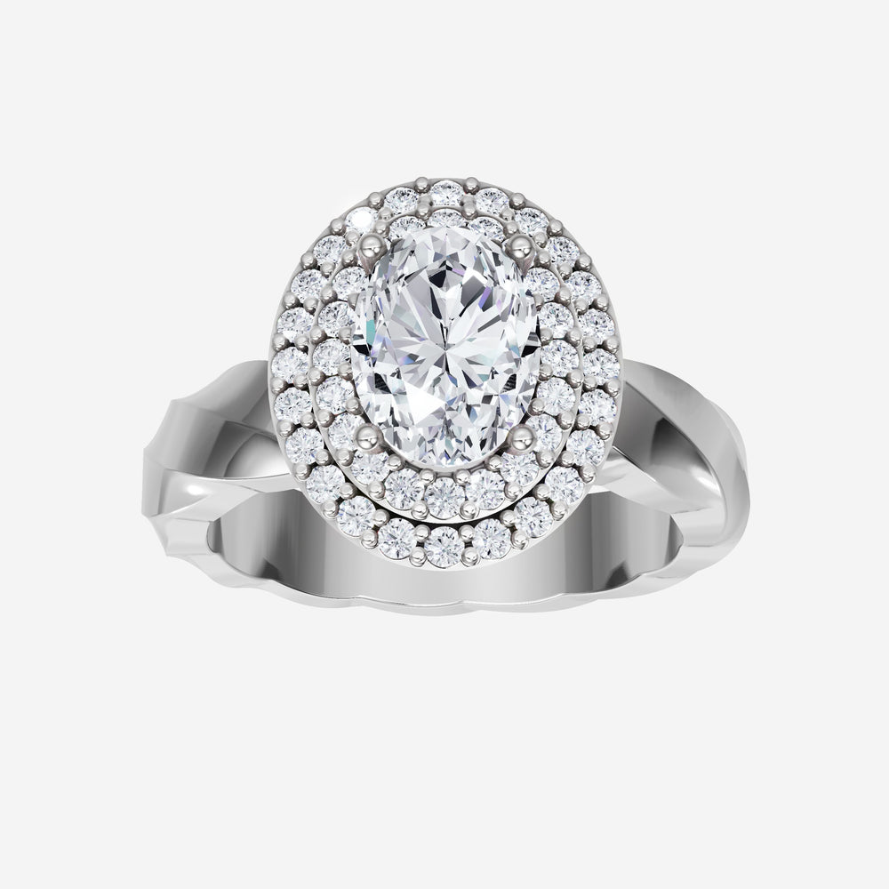 You’ve designed a ring that reflects lasting elegance and grace! Crafted from 18k White Gold, this exquisite Oval lab-grown diamond is the centerpiece of this unique design. This Twisted Shank with a Double Halo head showcases the brilliance of the Oval diamond, creating a timeless look. Whether as a gift or a personal treasure, this ring will forever symbolize the most meaningful moments in life.
