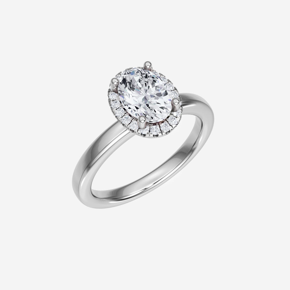 You’ve designed a ring that reflects lasting elegance and grace! Crafted from 18k White Gold, this exquisite Oval lab-grown diamond is the centerpiece of this unique design. This Basic Plain Shank with a Micro Halo head showcases the brilliance of the Oval diamond, creating a timeless look. Whether as a gift or a personal treasure, this ring will forever symbolize the most meaningful moments in life.
