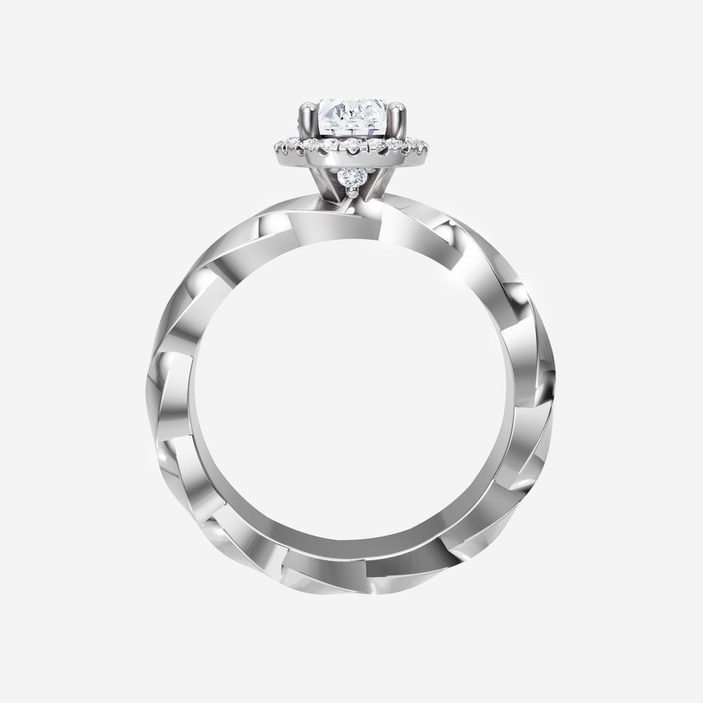 You’ve designed a ring that reflects lasting elegance and grace! Crafted from 18k White Gold, this exquisite Oval lab-grown diamond is the centerpiece of this unique design. This Twisted Shank with a Micro Halo head showcases the brilliance of the Oval diamond, creating a timeless look. This elegant piece is the perfect symbol of love, strength, and timeless beauty.