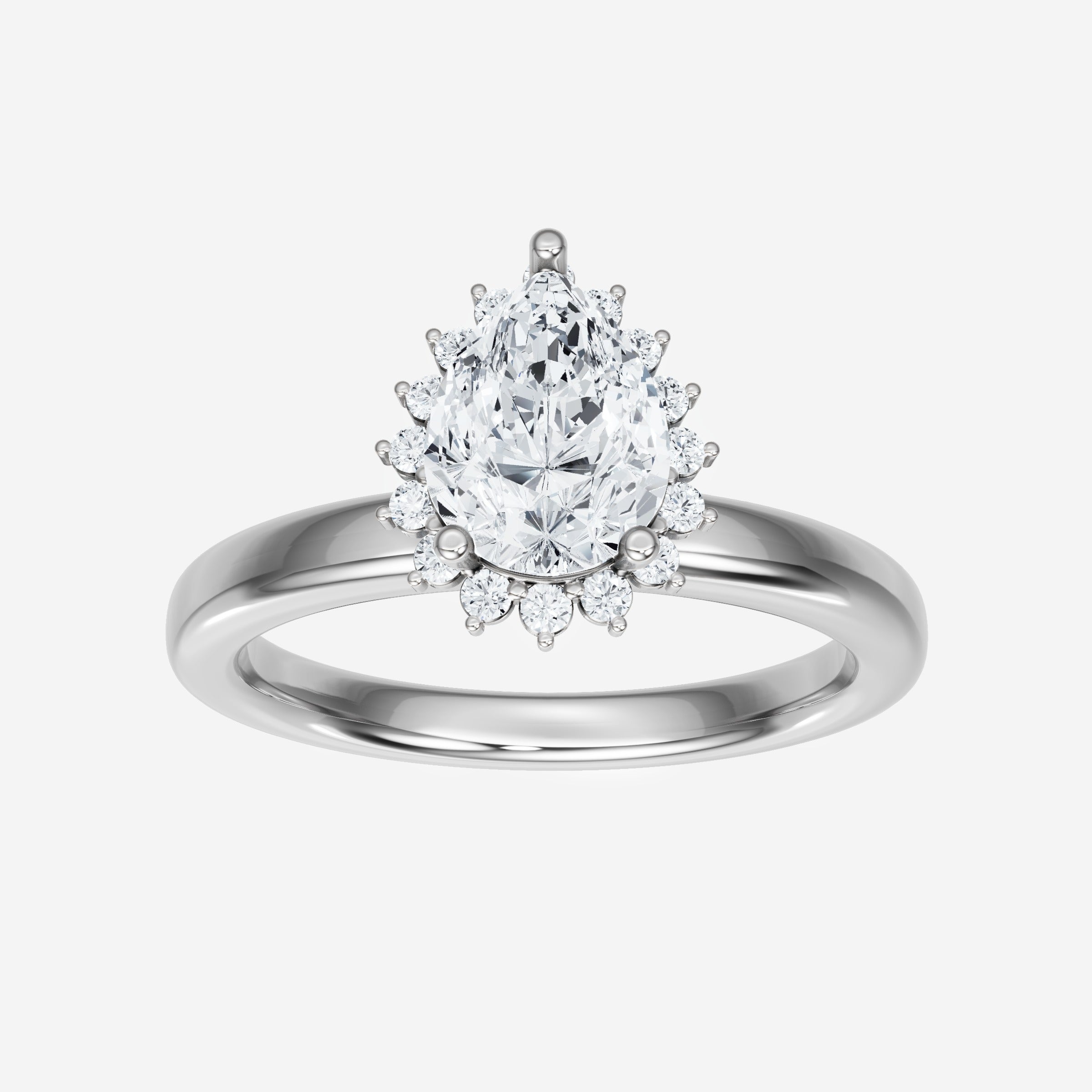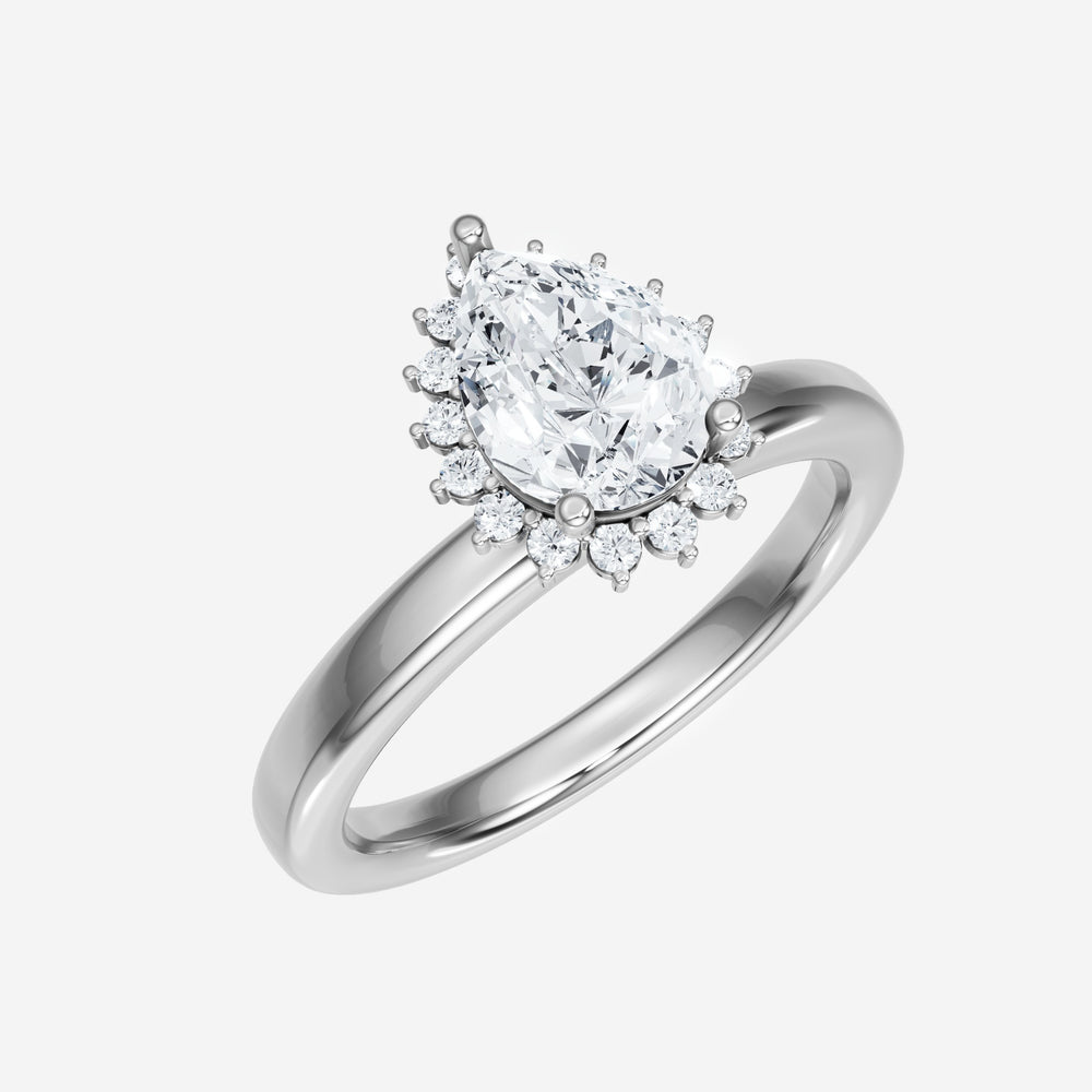 You’ve designed a ring that reflects lasting elegance and grace! Crafted from 18k White Gold, this exquisite Pear lab-grown diamond is the centerpiece of this unique design. This Basic Plain Shank with a Diana Halo head showcases the brilliance of the Pear diamond, creating a timeless look. It's a piece of elegance and beauty, perfect for marking life's most beautiful occasions.