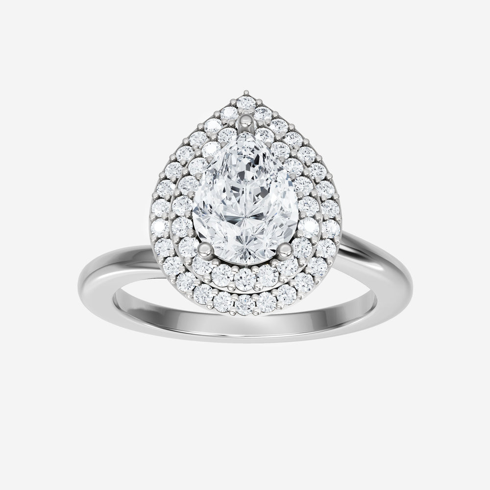 You’ve designed a ring that reflects lasting elegance and grace! Crafted from 18k White Gold, this exquisite Pear lab-grown diamond is the centerpiece of this unique design. This Bypass Shank with a Double Halo head showcases the brilliance of the Pear diamond, creating a timeless look. Whether as a gift or a personal treasure, this ring will forever symbolize the most meaningful moments in life.