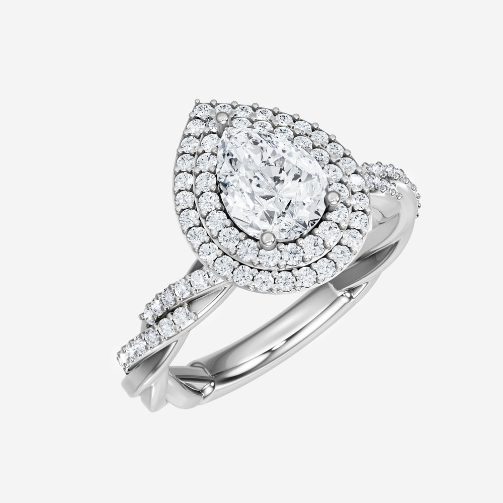 You’ve designed a ring that reflects lasting elegance and grace! Crafted from 18k White Gold, this exquisite Pear lab-grown diamond is the centerpiece of this unique design. This Rope Diamond Shank with a Double Halo head showcases the brilliance of the Pear diamond, creating a timeless look. A perfect choice to celebrate love, commitment, and everything in between.