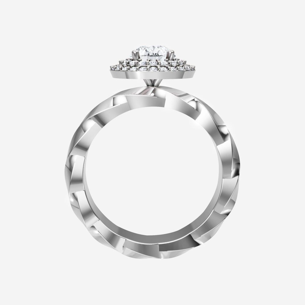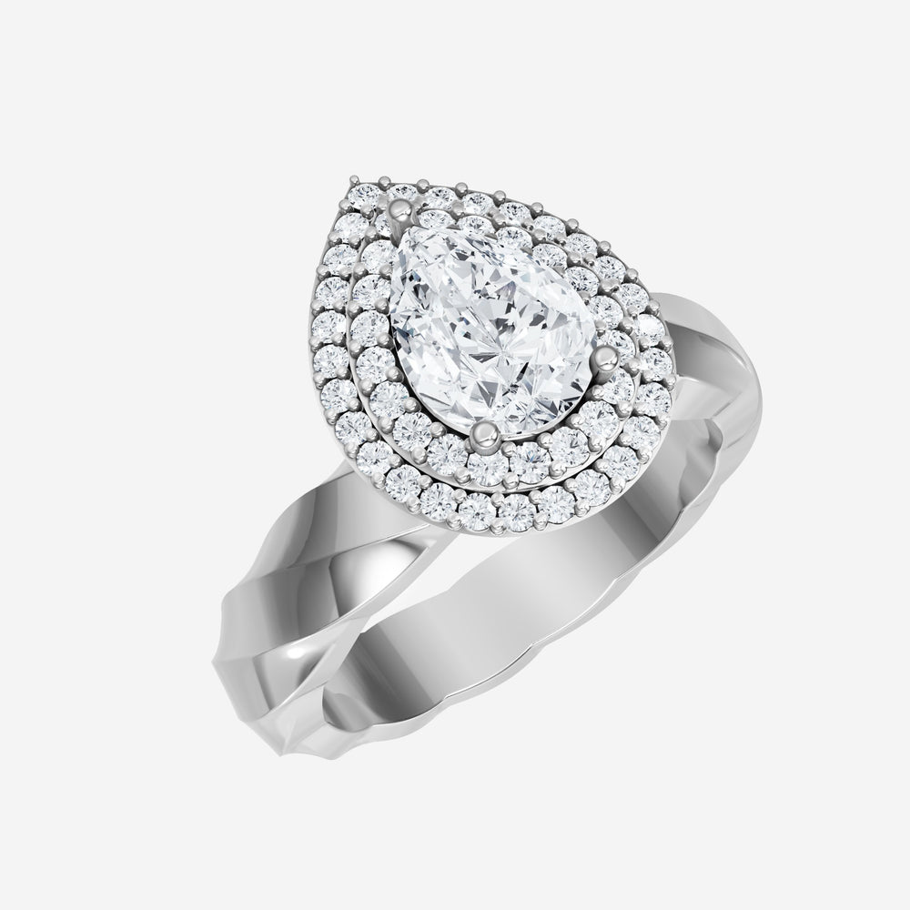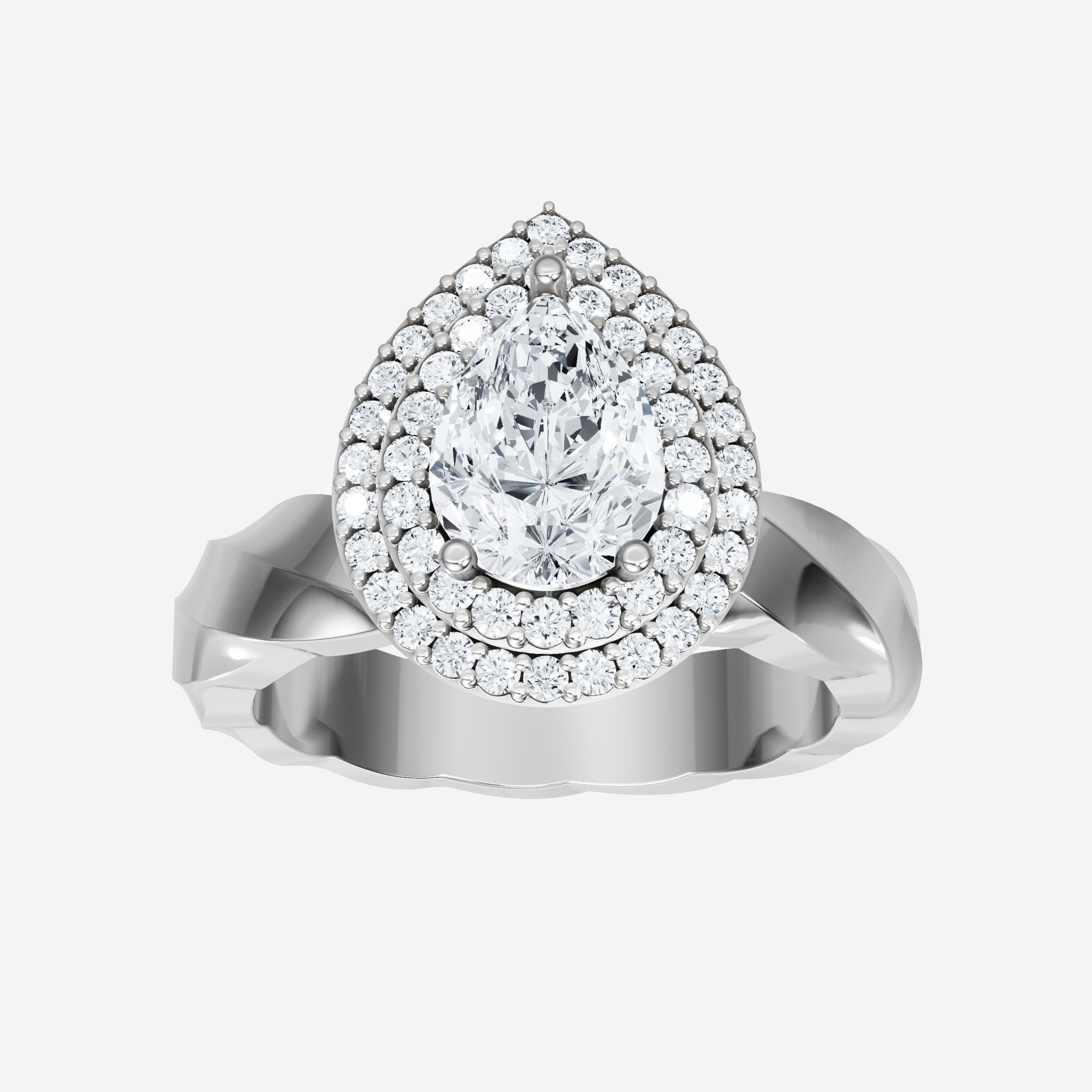You’ve designed a ring that reflects lasting elegance and grace! Crafted from 18k White Gold, this exquisite Pear lab-grown diamond is the centerpiece of this unique design. This Twisted Shank with a Double Halo head showcases the brilliance of the Pear diamond, creating a timeless look. This elegant piece is the perfect symbol of love, strength, and timeless beauty.