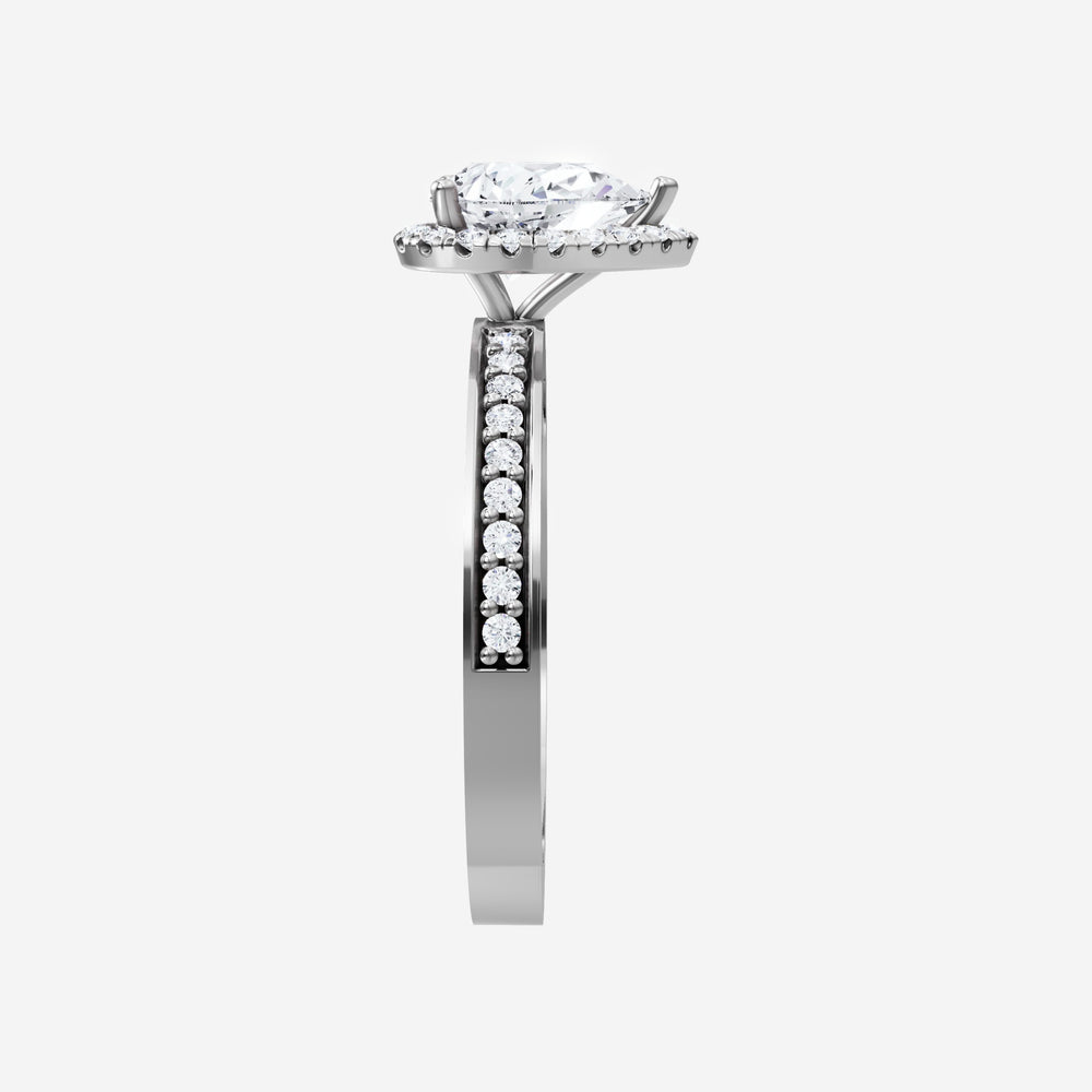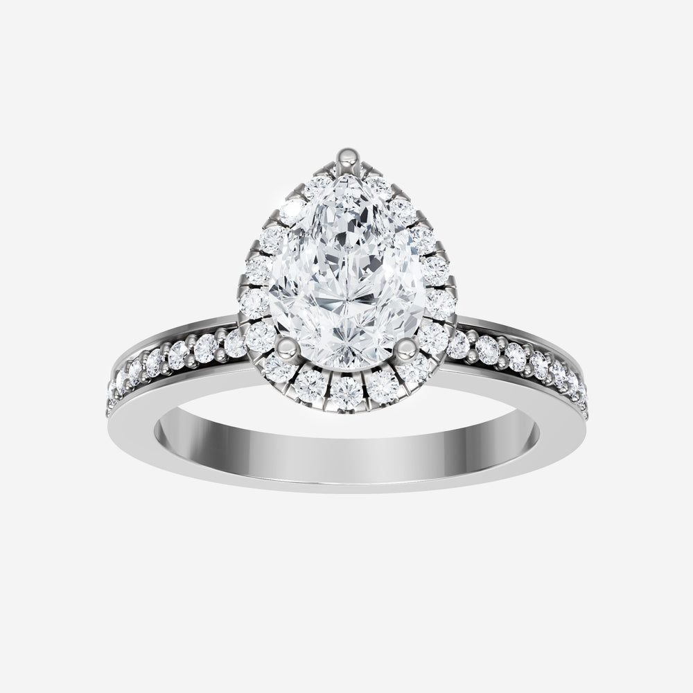 You’ve designed a ring that reflects lasting elegance and grace! Crafted from 18k White Gold, this exquisite Pear lab-grown diamond is the centerpiece of this unique design. This Single Pave Shank with a Micro Halo head showcases the brilliance of the Pear diamond, creating a timeless look. With this ring, celebrate every moment of joy, success, and love.