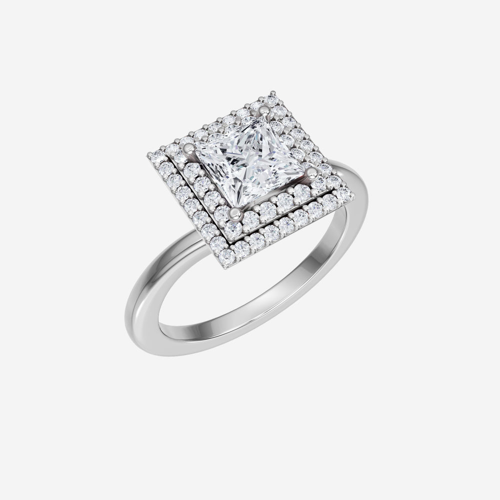 You’ve designed a ring that reflects lasting elegance and grace! Crafted from 18k White Gold, this exquisite Princess lab-grown diamond is the centerpiece of this unique design. This Bypass Shank with a Double Halo head showcases the brilliance of the Princess diamond, creating a timeless look. This ring will become a cherished reminder of life's most treasured moments.