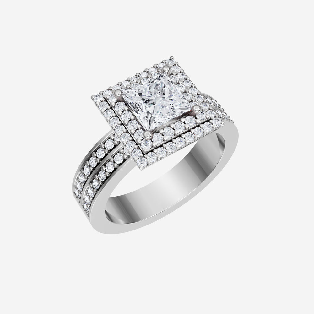 You’ve designed a ring that reflects lasting elegance and grace! Crafted from 18k White Gold, this exquisite Princess lab-grown diamond is the centerpiece of this unique design. This Double Row Pave with a Double Halo head showcases the brilliance of the Princess diamond, creating a timeless look. With this ring, celebrate every moment of joy, success, and love.