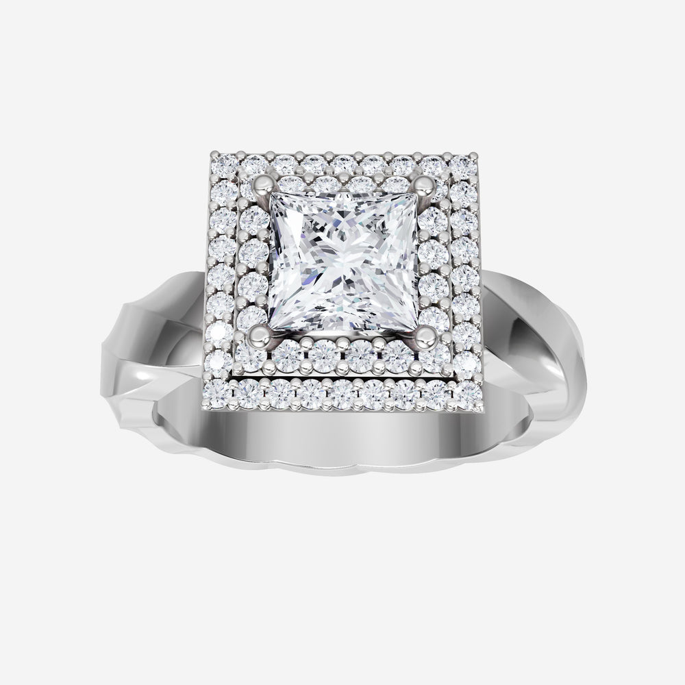 You’ve designed a ring that reflects lasting elegance and grace! Crafted from 18k White Gold, this exquisite Princess lab-grown diamond is the centerpiece of this unique design. This Twisted Shank with a Double Halo head showcases the brilliance of the Princess diamond, creating a timeless look. A perfect choice to celebrate love, commitment, and everything in between.
