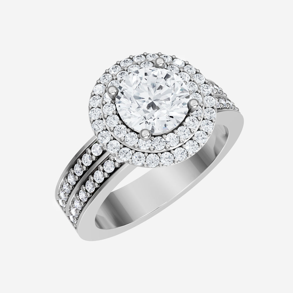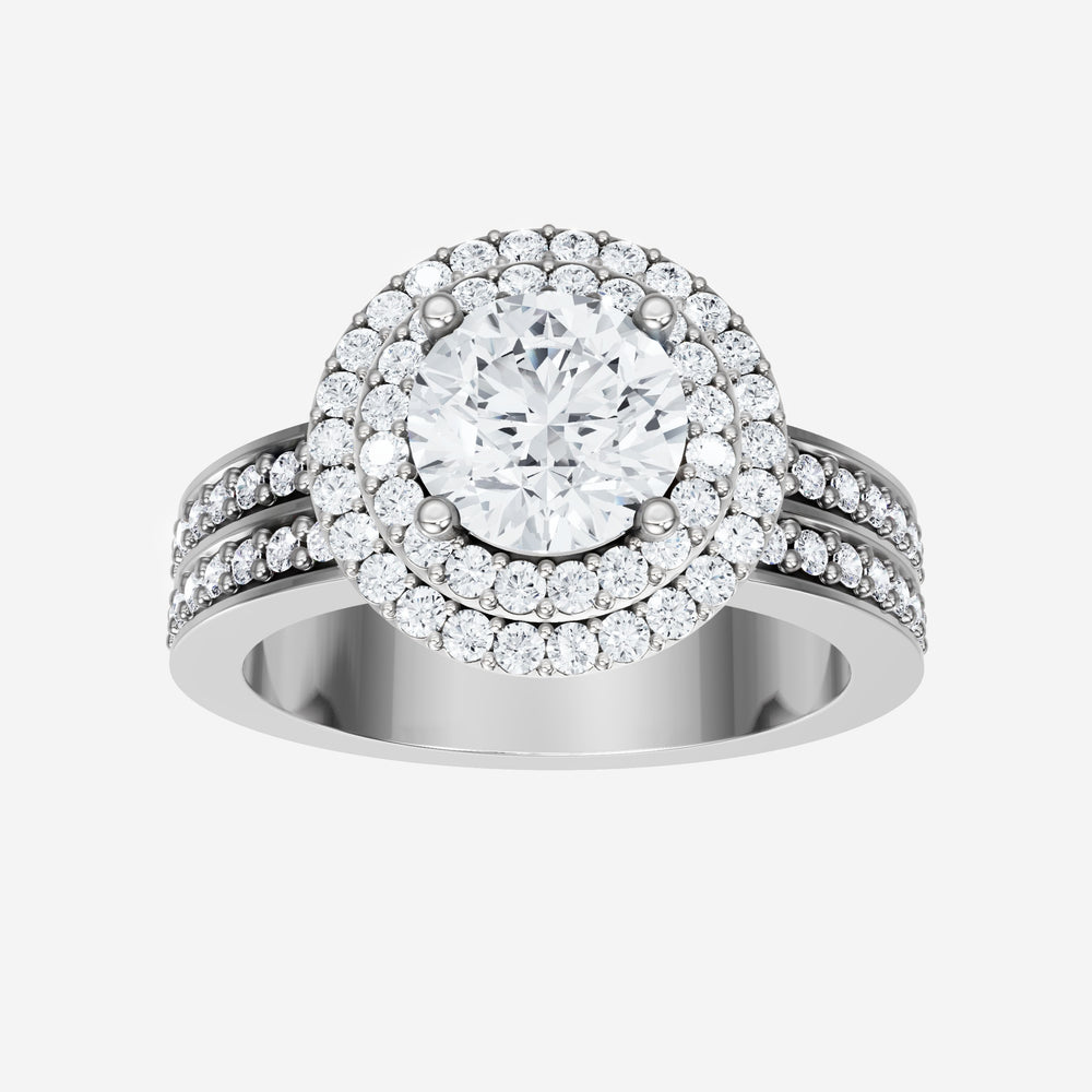 You’ve designed a ring that reflects lasting elegance and grace! Crafted from 18k White Gold, this exquisite Round lab-grown diamond is the centerpiece of this unique design. This Double Row Pave with a Double Halo head showcases the brilliance of the Round diamond, creating a timeless look. This stunning ring makes the perfect symbol of everlasting love and devotion.
