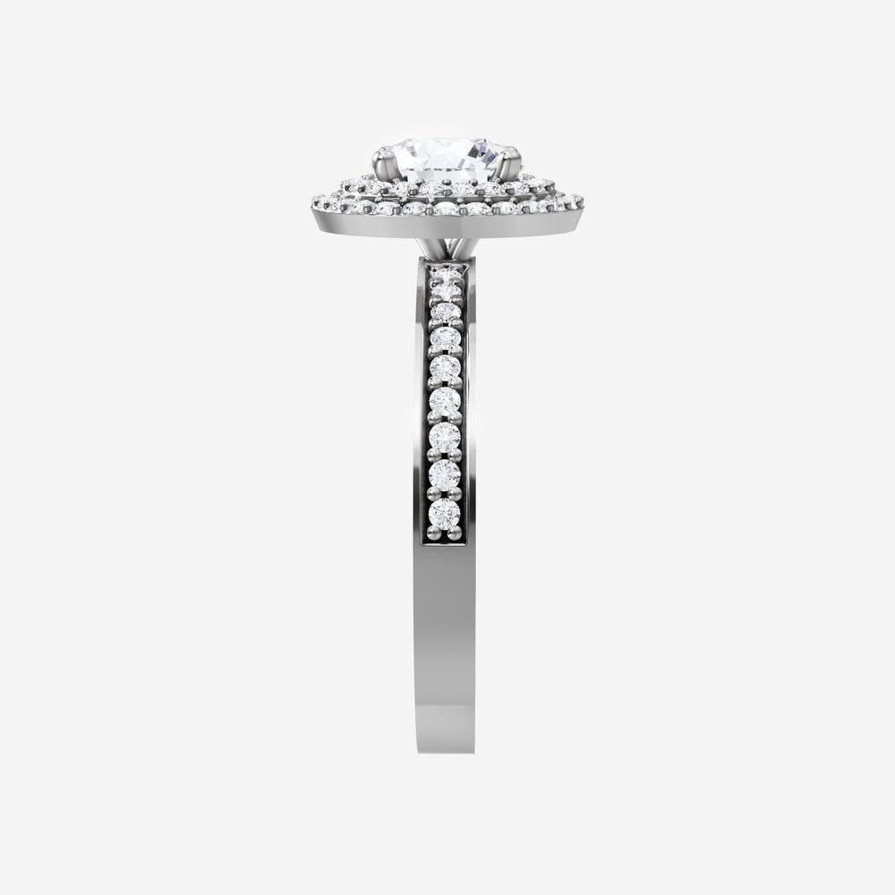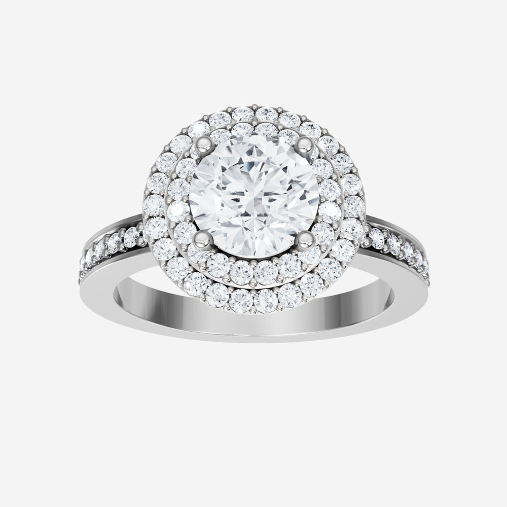 You’ve designed a ring that reflects lasting elegance and grace! Crafted from 18k White Gold, this exquisite Round lab-grown diamond is the centerpiece of this unique design. This Single Pave Shank with a Double Halo head showcases the brilliance of the Round diamond, creating a timeless look. It's a piece of elegance and beauty, perfect for marking life's most beautiful occasions.