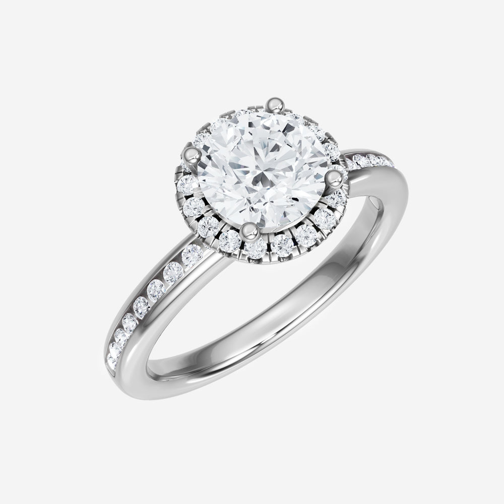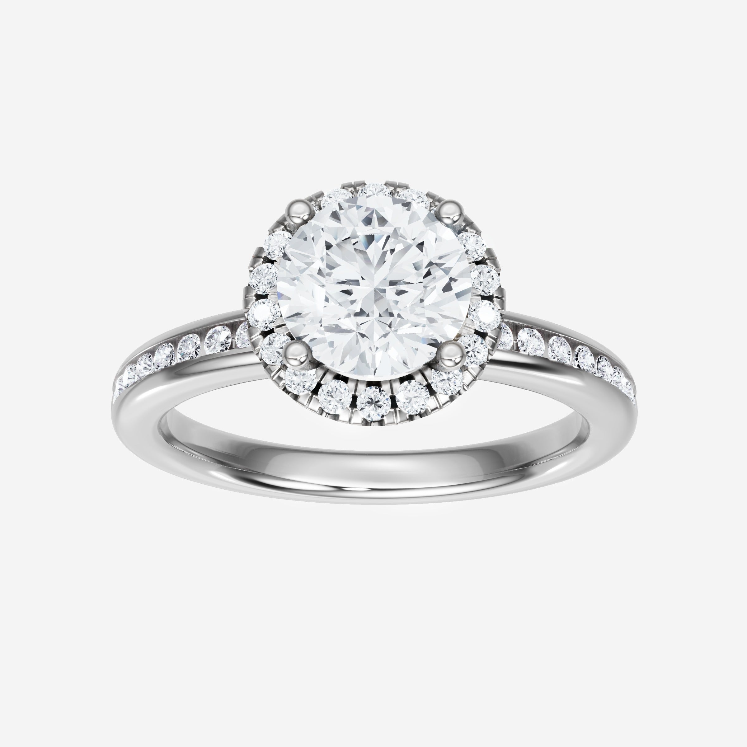 You’ve designed a ring that reflects lasting elegance and grace! Crafted from 18k White Gold, this exquisite Round lab-grown diamond is the centerpiece of this unique design. This Channel Set Shank with a Micro Halo head showcases the brilliance of the Round diamond, creating a timeless look. This elegant piece is the perfect symbol of love, strength, and timeless beauty.