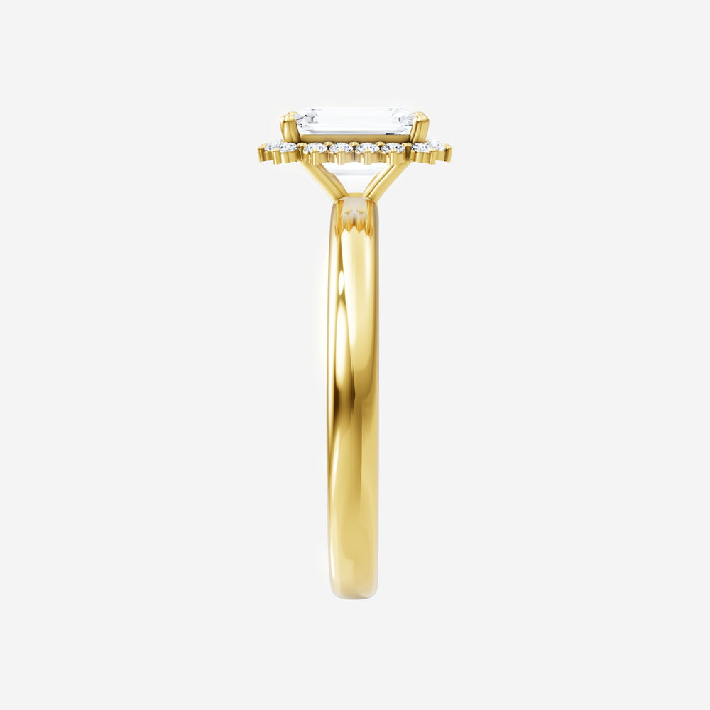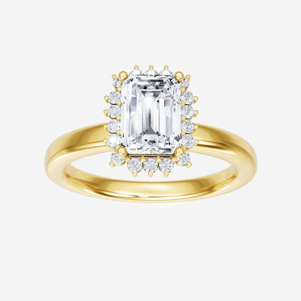 You’ve designed a ring that reflects lasting elegance and grace! Crafted from 18k Yellow Gold, this exquisite Emerald lab-grown diamond is the centerpiece of this unique design. This Basic Plain Shank with a Diana Halo head showcases the brilliance of the Emerald diamond, creating a timeless look. This ring will become a cherished reminder of life's most treasured moments.