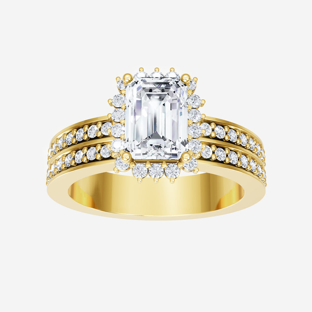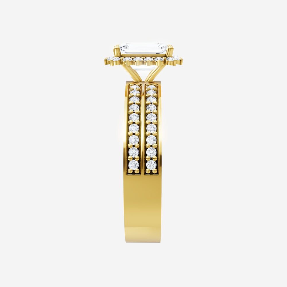 You’ve designed a ring that reflects lasting elegance and grace! Crafted from 18k Yellow Gold, this exquisite Emerald lab-grown diamond is the centerpiece of this unique design. This Double Row Pave with a Diana Halo head showcases the brilliance of the Emerald diamond, creating a timeless look. With this ring, celebrate every moment of joy, success, and love.