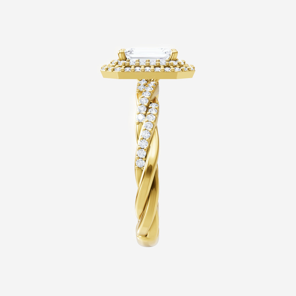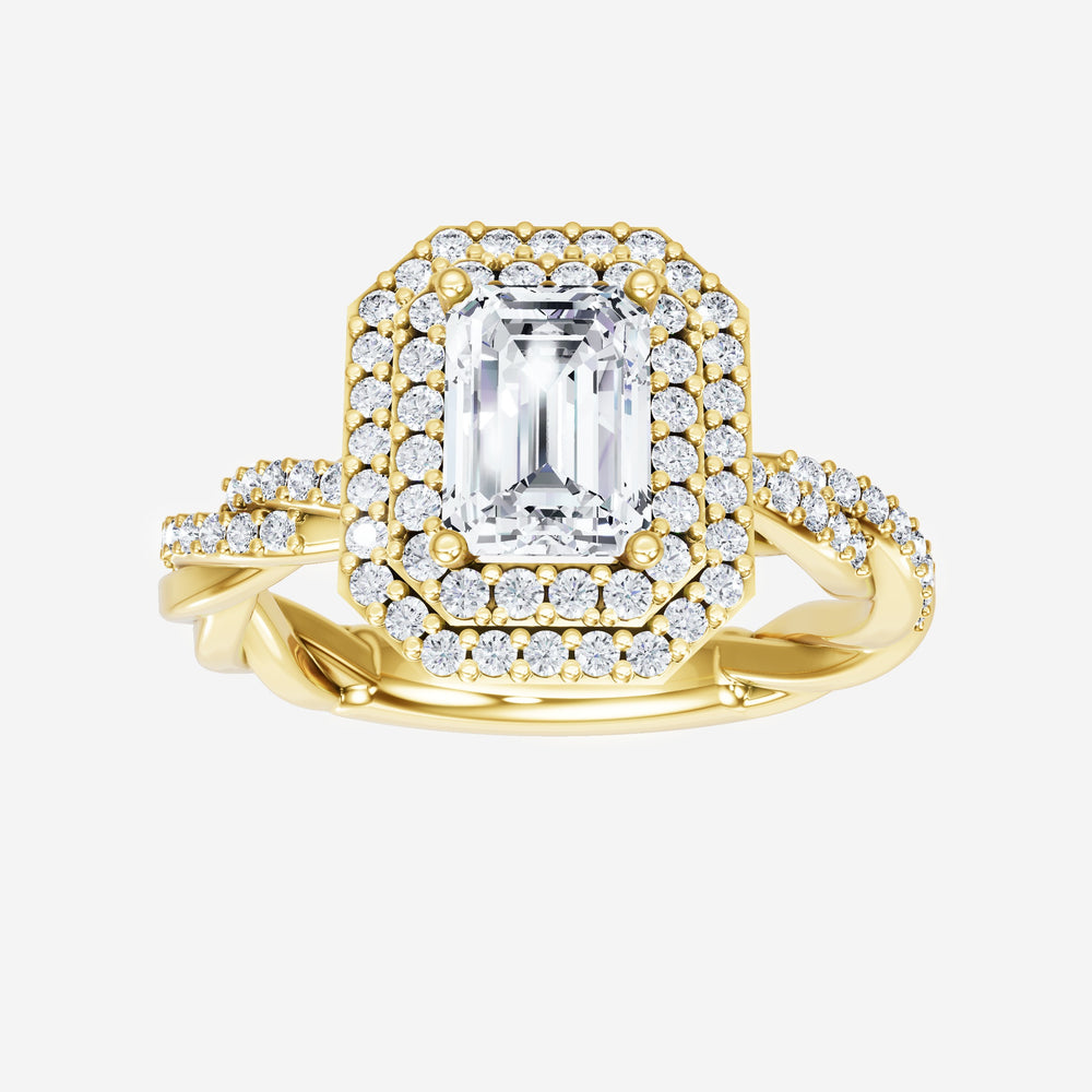 You’ve designed a ring that reflects lasting elegance and grace! Crafted from 18k Yellow Gold, this exquisite Emerald lab-grown diamond is the centerpiece of this unique design. This Rope Diamond Shank with a Double Halo head showcases the brilliance of the Emerald diamond, creating a timeless look. With this ring, celebrate every moment of joy, success, and love.