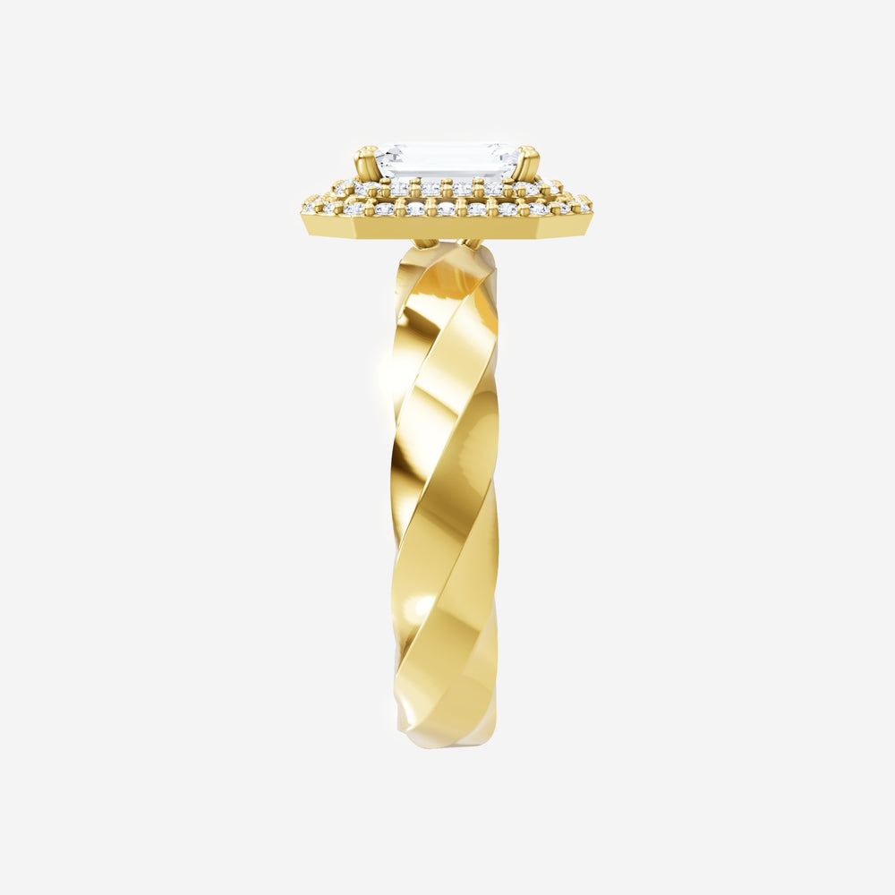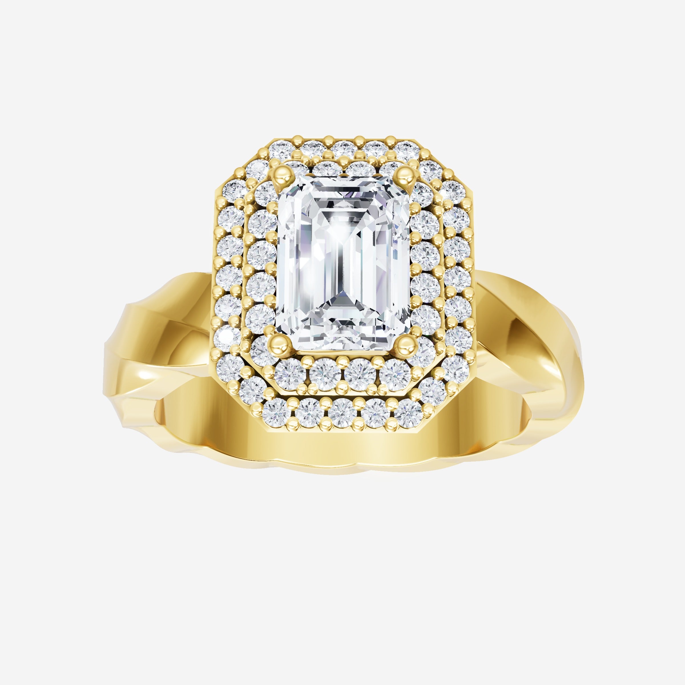 You’ve designed a ring that reflects lasting elegance and grace! Crafted from 18k Yellow Gold, this exquisite Emerald lab-grown diamond is the centerpiece of this unique design. This Twisted Shank with a Double Halo head showcases the brilliance of the Emerald diamond, creating a timeless look. Ideal for those who seek both beauty and meaning, this ring will stand as a testament to cherished memories.