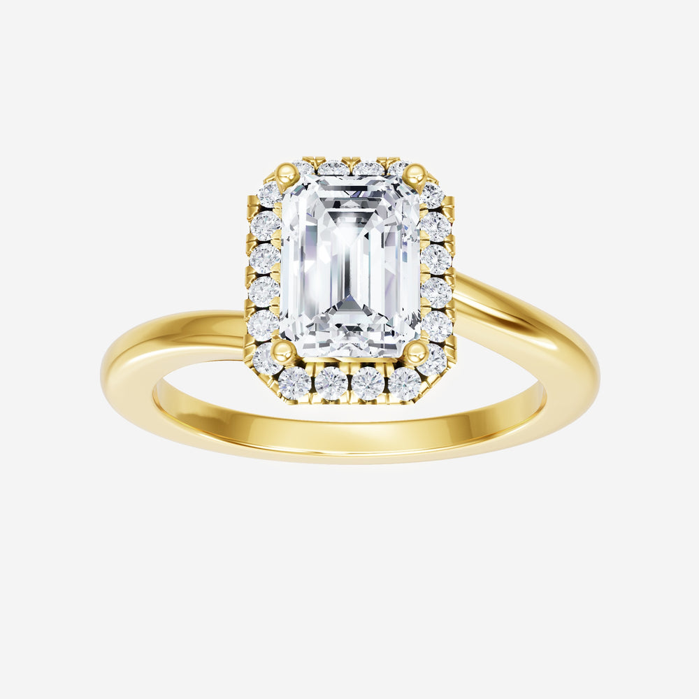 You’ve designed a ring that reflects lasting elegance and grace! Crafted from 18k Yellow Gold, this exquisite Emerald lab-grown diamond is the centerpiece of this unique design. This Bypass Shank with a Micro Halo head showcases the brilliance of the Emerald diamond, creating a timeless look. Ideal for those who seek both beauty and meaning, this ring will stand as a testament to cherished memories.