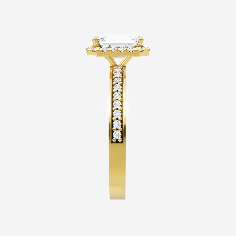 You’ve designed a ring that reflects lasting elegance and grace! Crafted from 18k Yellow Gold, this exquisite Emerald lab-grown diamond is the centerpiece of this unique design. This Single Pave Shank with a Micro Halo head showcases the brilliance of the Emerald diamond, creating a timeless look. Whether as a gift or a personal treasure, this ring will forever symbolize the most meaningful moments in life.