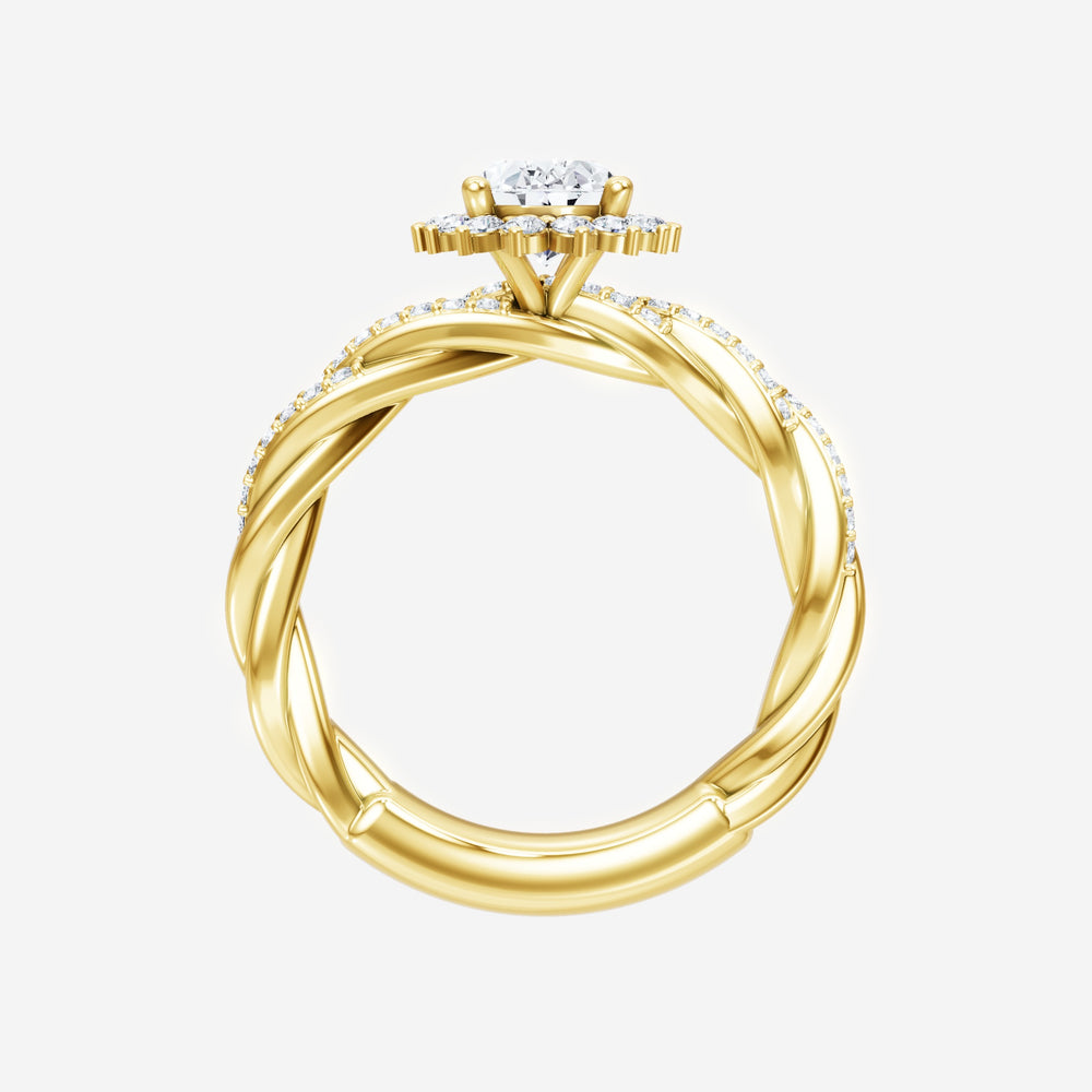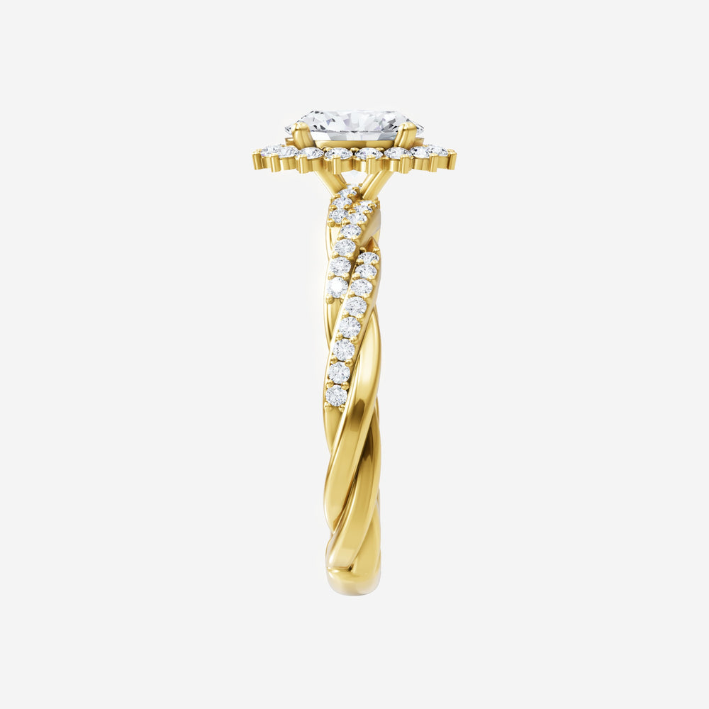You’ve designed a ring that reflects lasting elegance and grace! Crafted from 18k Yellow Gold, this exquisite Oval lab-grown diamond is the centerpiece of this unique design. This Rope Diamond Shank with a Diana Halo head showcases the brilliance of the Oval diamond, creating a timeless look. This ring will become a cherished reminder of life's most treasured moments.