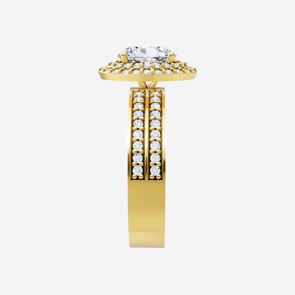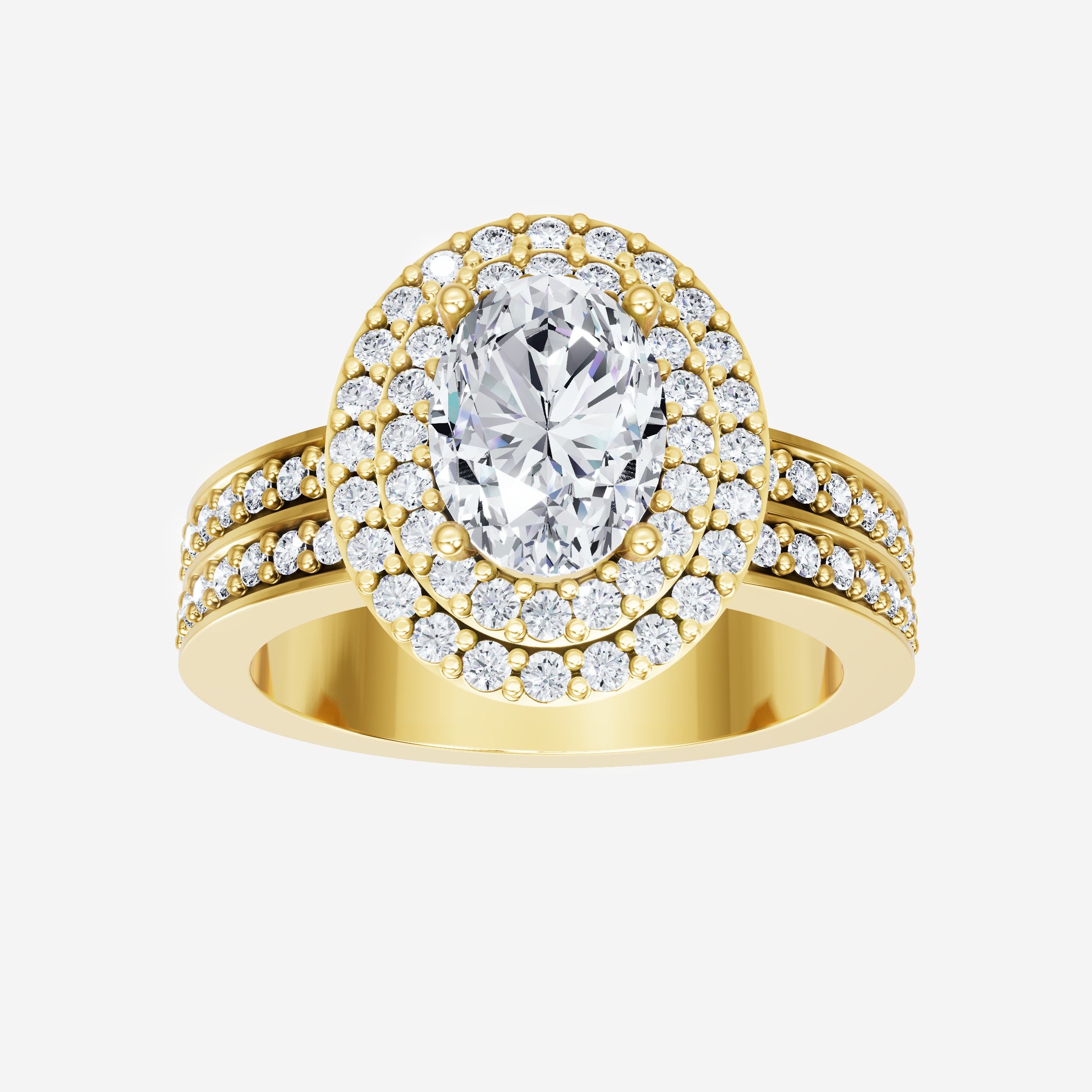 You’ve designed a ring that reflects lasting elegance and grace! Crafted from 18k Yellow Gold, this exquisite Oval lab-grown diamond is the centerpiece of this unique design. This Double Row Pave with a Double Halo head showcases the brilliance of the Oval diamond, creating a timeless look. It's a piece of elegance and beauty, perfect for marking life's most beautiful occasions.