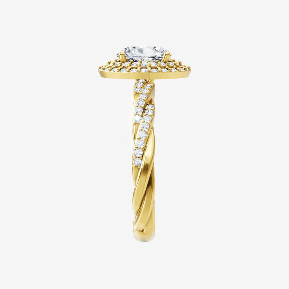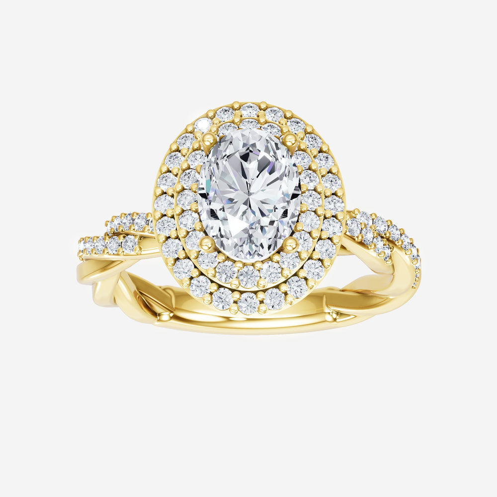 You’ve designed a ring that reflects lasting elegance and grace! Crafted from 18k Yellow Gold, this exquisite Oval lab-grown diamond is the centerpiece of this unique design. This Rope Diamond Shank with a Double Halo head showcases the brilliance of the Oval diamond, creating a timeless look. A perfect choice to celebrate love, commitment, and everything in between.