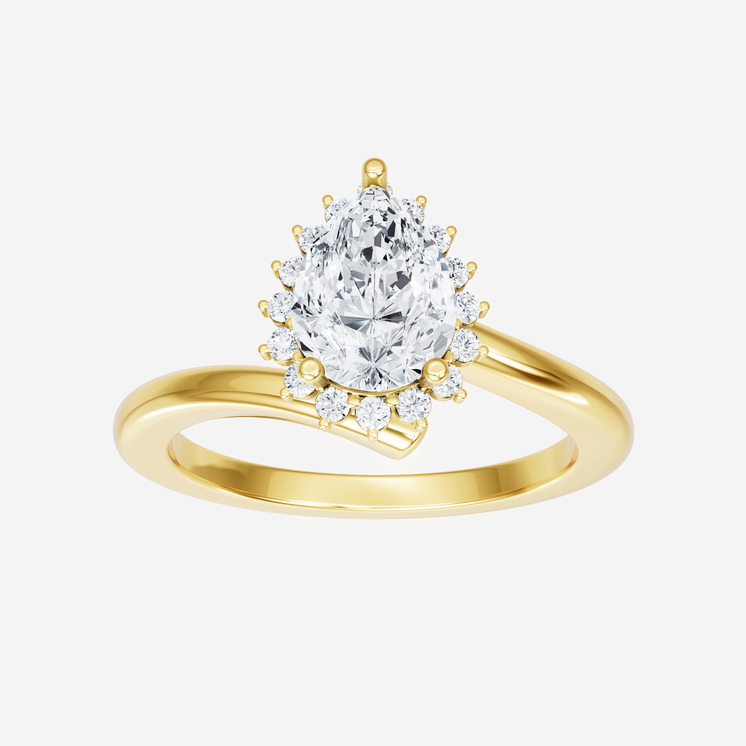 You’ve designed a ring that reflects lasting elegance and grace! Crafted from 18k Yellow Gold, this exquisite Pear lab-grown diamond is the centerpiece of this unique design. This Bypass Shank with a Diana Halo head showcases the brilliance of the Pear diamond, creating a timeless look. Ideal for those who seek both beauty and meaning, this ring will stand as a testament to cherished memories.