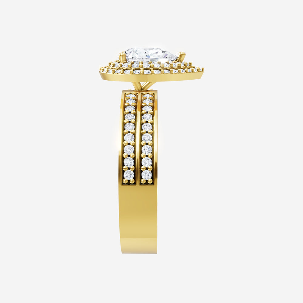 You’ve designed a ring that reflects lasting elegance and grace! Crafted from 18k Yellow Gold, this exquisite Pear lab-grown diamond is the centerpiece of this unique design. This Double Row Pave with a Double Halo head showcases the brilliance of the Pear diamond, creating a timeless look. It's a piece of elegance and beauty, perfect for marking life's most beautiful occasions.