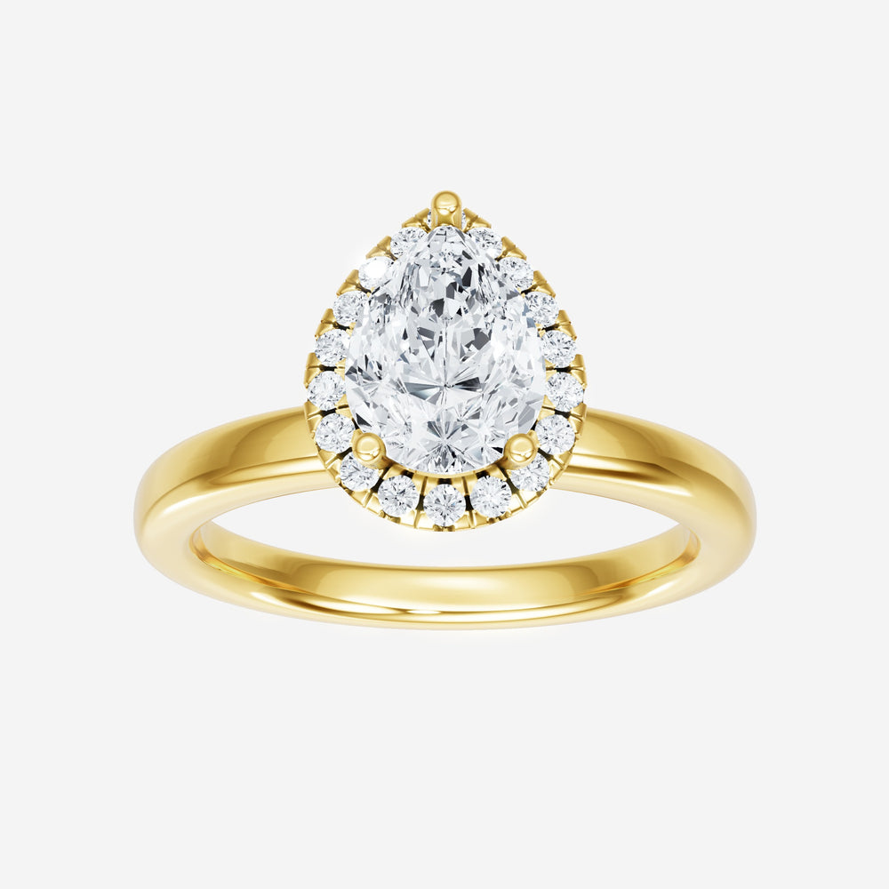 You’ve designed a ring that reflects lasting elegance and grace! Crafted from 18k Yellow Gold, this exquisite Pear lab-grown diamond is the centerpiece of this unique design. This Basic Plain Shank with a Micro Halo head showcases the brilliance of the Pear diamond, creating a timeless look. A perfect choice to celebrate love, commitment, and everything in between.