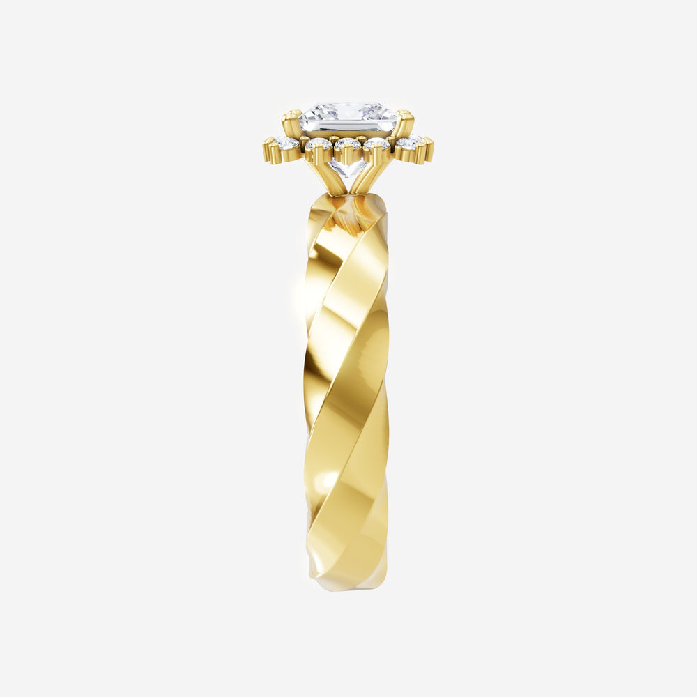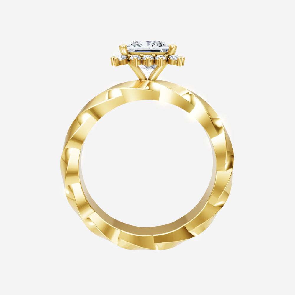 You’ve designed a ring that reflects lasting elegance and grace! Crafted from 18k Yellow Gold, this exquisite Princess lab-grown diamond is the centerpiece of this unique design. This Twisted Shank with a Diana Halo head showcases the brilliance of the Princess diamond, creating a timeless look. This ring will become a cherished reminder of life's most treasured moments.