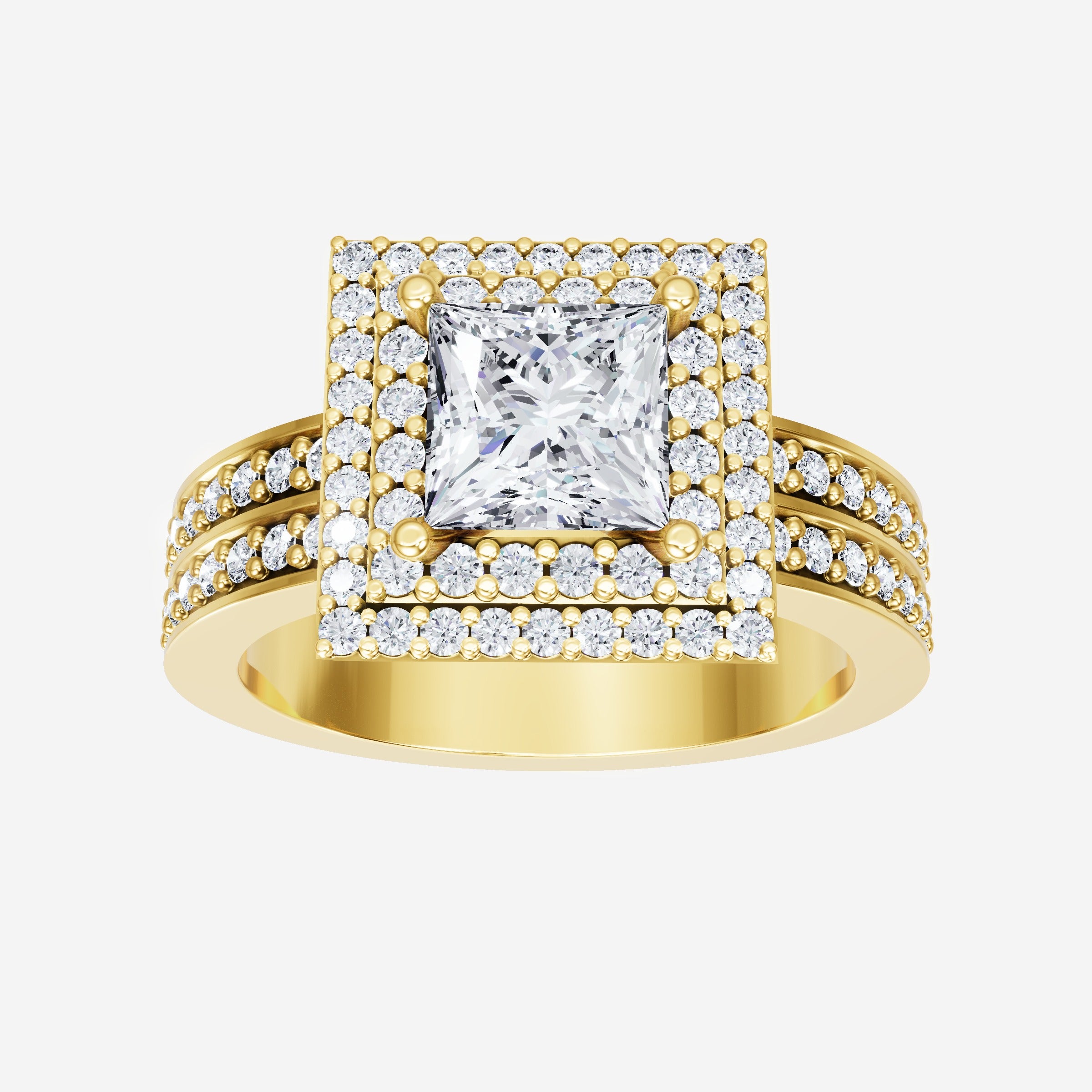 You’ve designed a ring that reflects lasting elegance and grace! Crafted from 18k Yellow Gold, this exquisite Princess lab-grown diamond is the centerpiece of this unique design. This Double Row Pave with a Double Halo head showcases the brilliance of the Princess diamond, creating a timeless look. Whether as a gift or a personal treasure, this ring will forever symbolize the most meaningful moments in life.